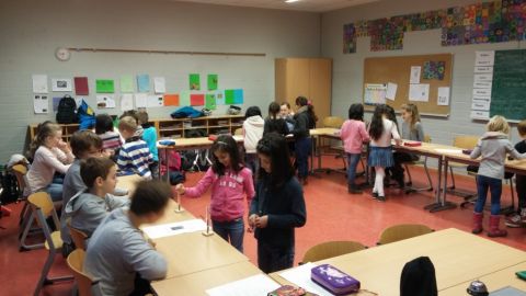 Schüler der Gebrüder-Grimm-Grundschule besuchen die Klasse 6a