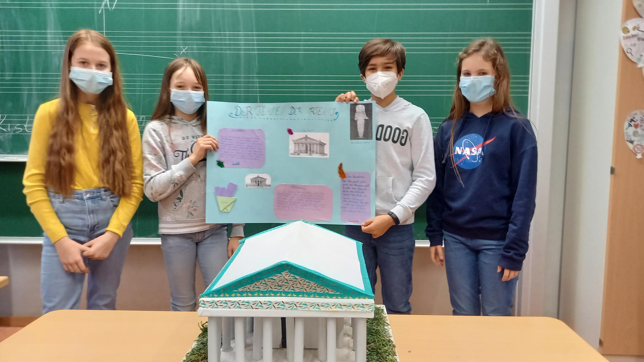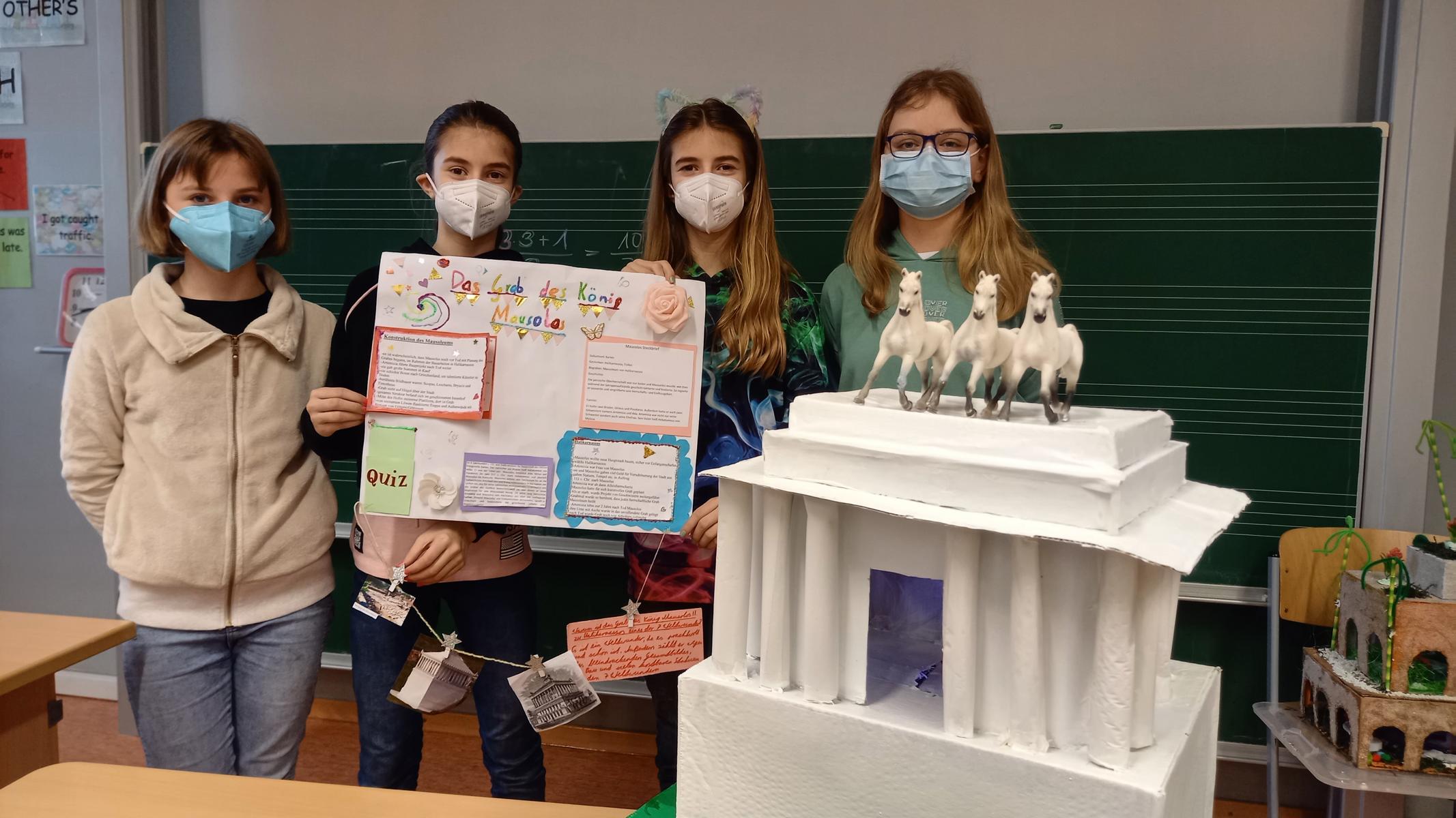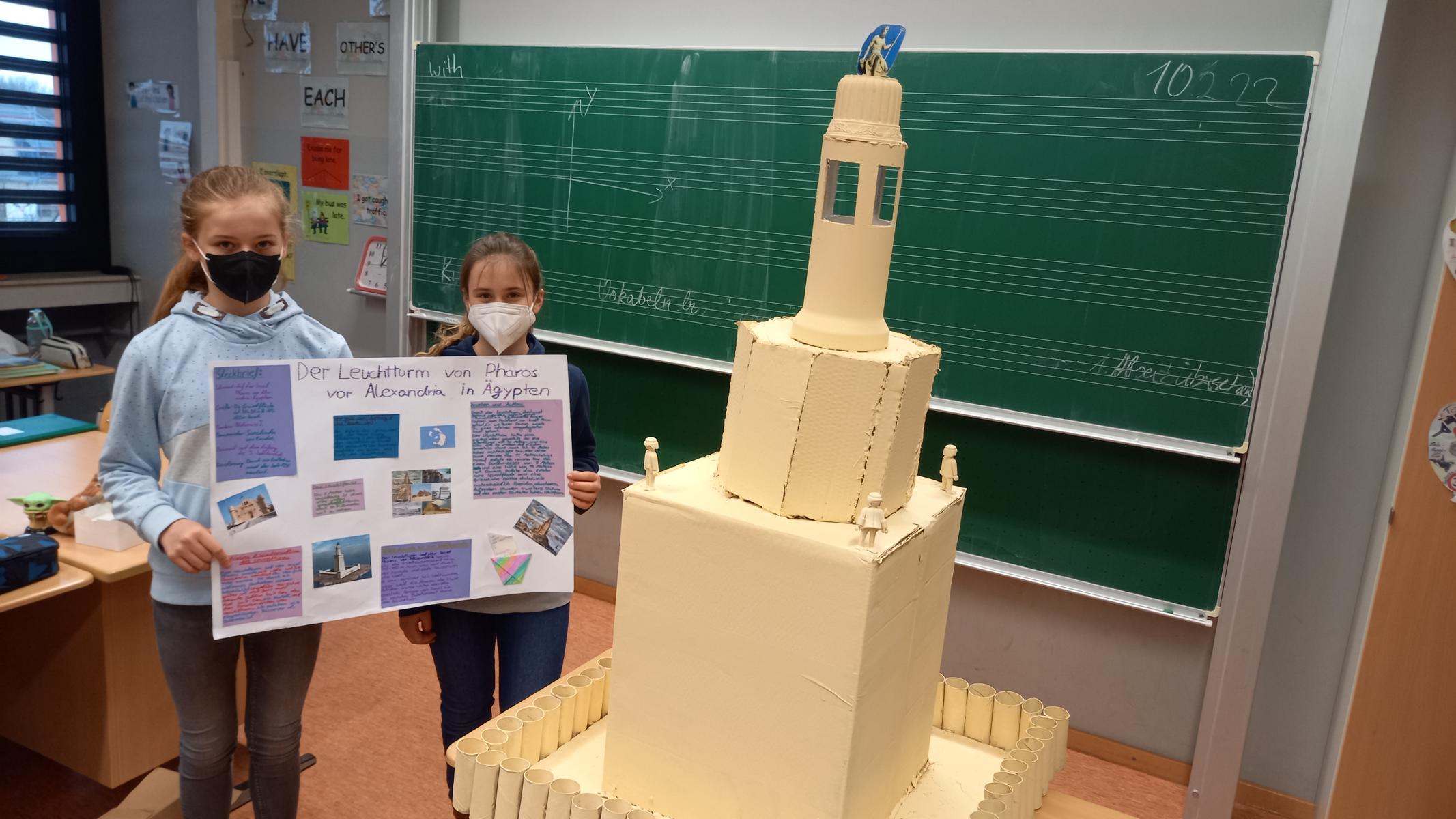Die Klasse 6a hat sich im Rahmen des Geschichtsunterrichts mit den sieben antiken Weltwundern beschäftigt. Hierzu haben die Schülerinnen und Schüler nicht nur Vorträge vorbereitet, um ihre Mitschüler zu informieren, sondern auch hervorragende Modelle in mühevoller Arbeit erstellt, die sich wirklich sehen lassen können. Diese kolossalen Modelle, de zugehörigen kreative Plakate und stolze Schülerinnen und Schülern sehen Sie in der abschließenden Bildergalerie. Zuvor können Sie in Paula Vasens Bericht vom hohen Engagement in der Klasse und die Arbeitsweise in ihrer Gruppe lesen: