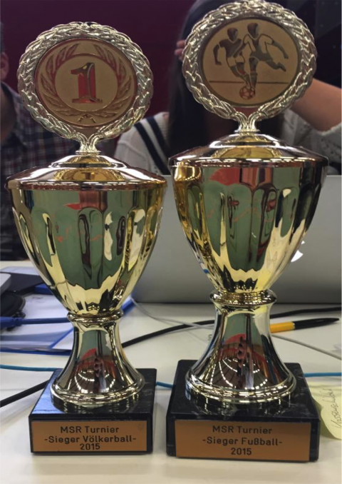 Nachdem der 1. Platz im Fußball durch die 9a in die Jahrgangsstufe 9 ging, konnte sich die 8a nach 10 Minuten gegen die 9d im Finale des Völkerballturniers durchsetzten. Zum Schluss wurden die Sieger natürlich durch Schulleiter Hans van Stephoudt gekürt. Für die Sieger im Fußball und Völkerball gab es einen Pokal, eine Urkunde und etwas Süßes für die ganze Klasse.
