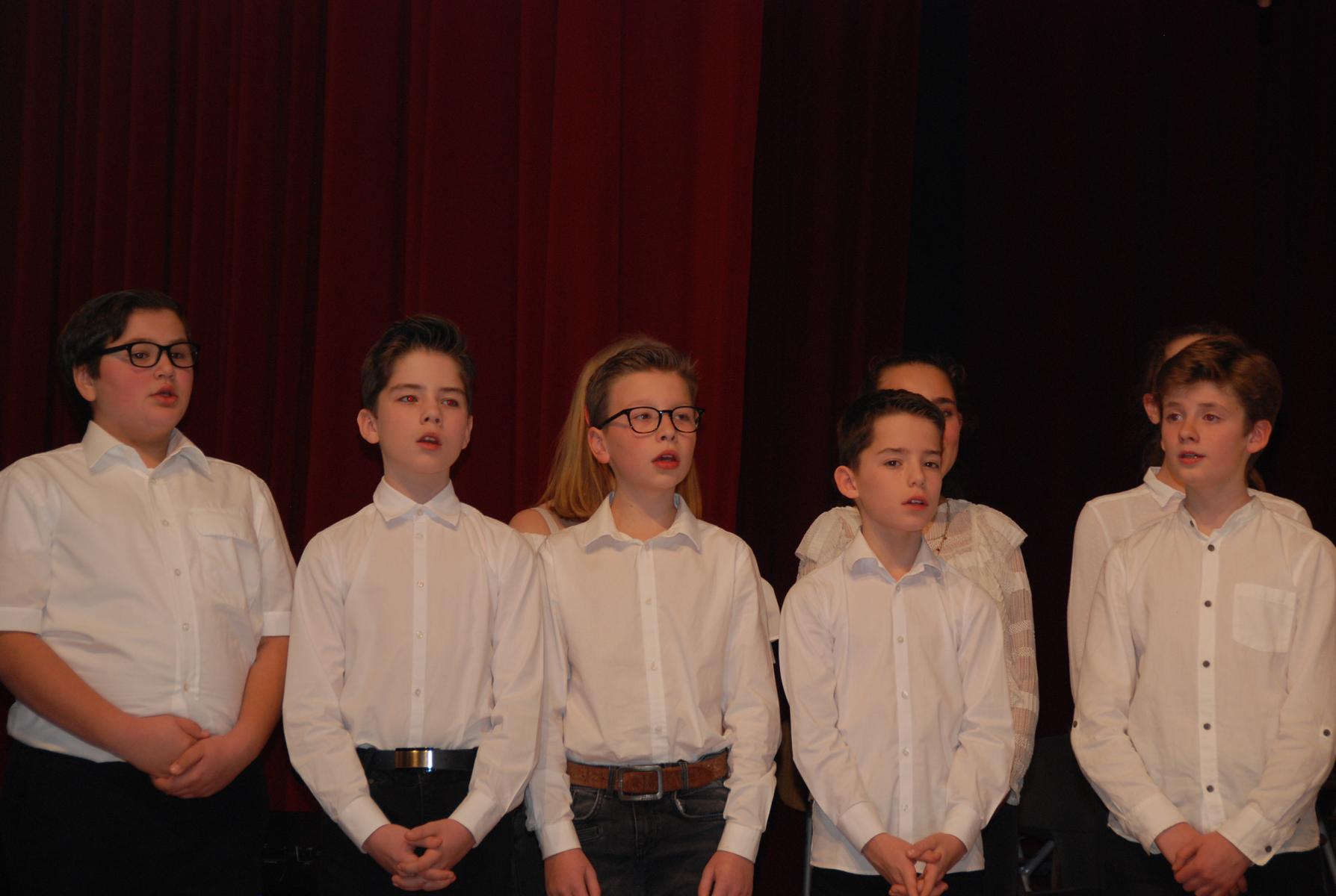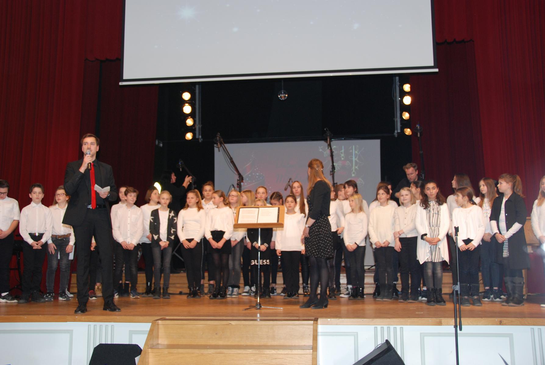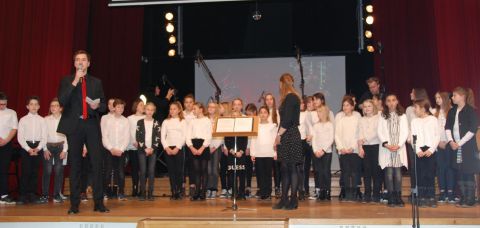 Mit dem Kanon „Licht auf meinem Weg in der Dunkelheit“ führte der Unter- und Mittelstufenchor unter der Leitung von Musiklehrerin Cordelia Rahrbach-Sander und Musikreferendarin Simone Ruppik besinnlich anschließend den zweiten, vokalen Block der ersten Konzerthälfte an. Die freudige Botschaft der Verkündigung Jesu Geburt im nachfolgenden traditionellen Spiritual „Jesus, what a wonderful child“ bekräftigte der Unter- und Mittelstufenchor gemeinsam mit dem Oberstufenchor stimmungsvoll und mitreißend im Gospel „Sing it out loud“.