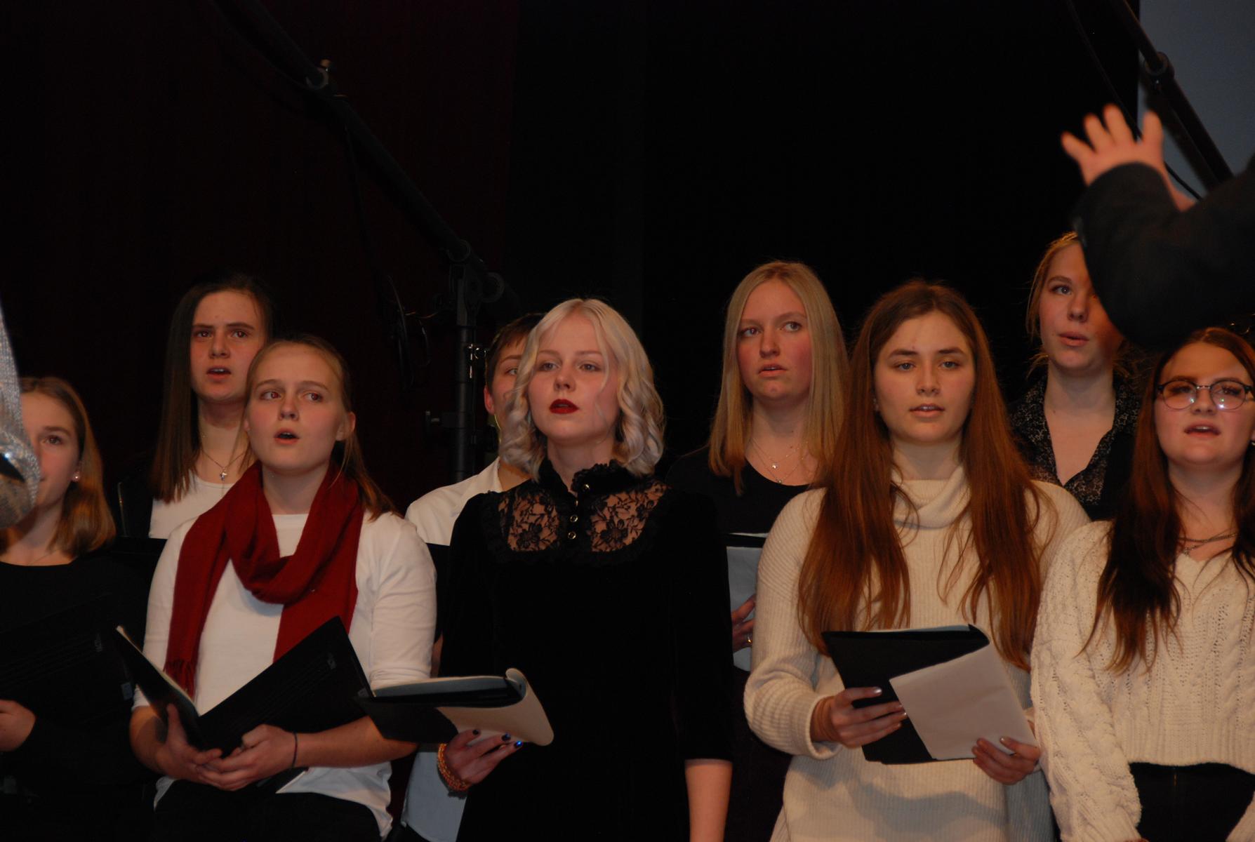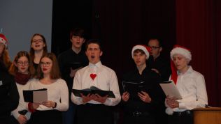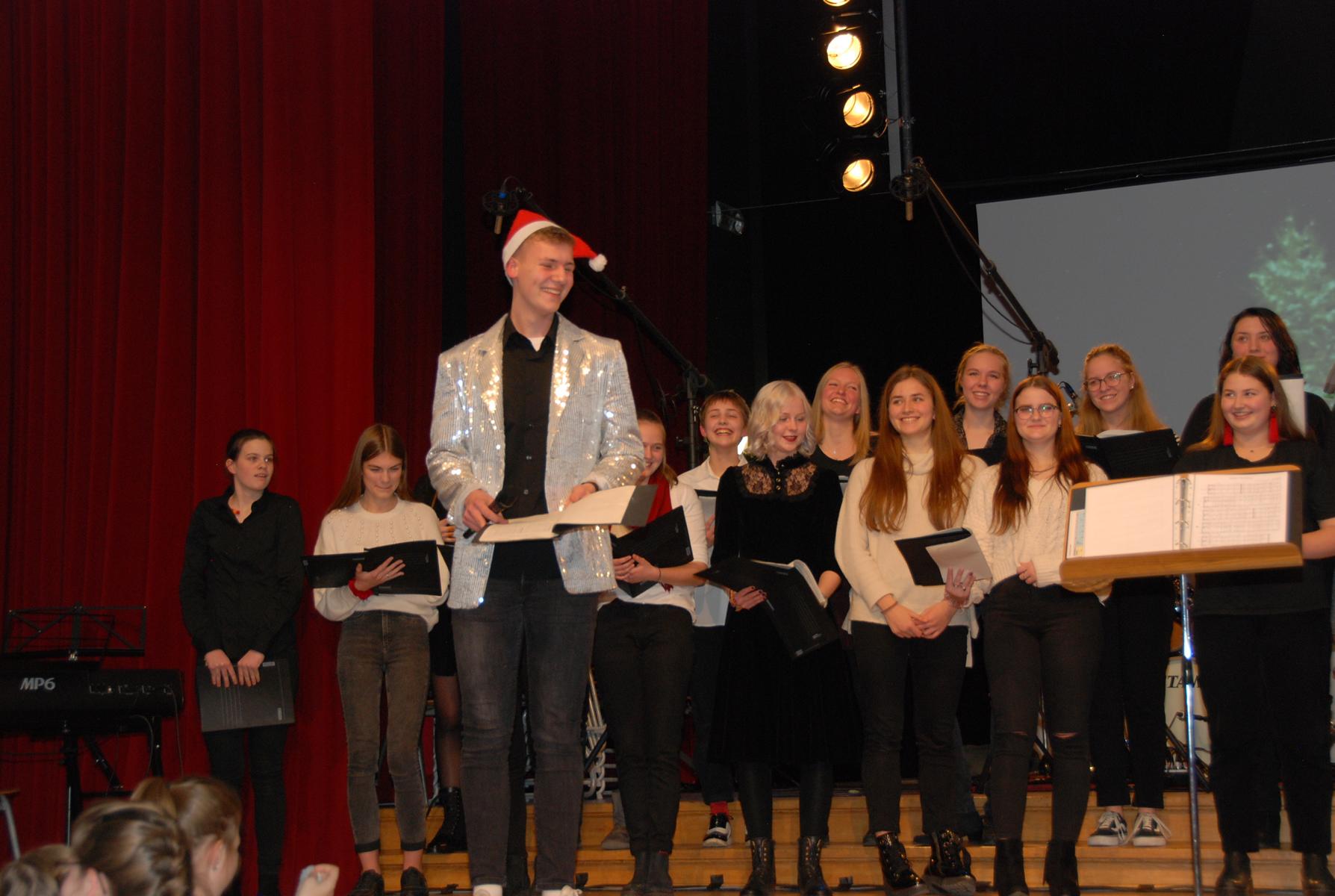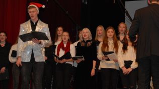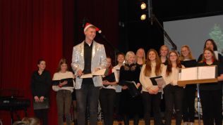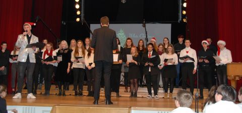 Meisterte weiße Weihnacht amerikanischer Art: Der Oberstufenchor unter der Leitung von Musiklehrer Simon Stockamp und Musikreferendarin Simone Ruppik.