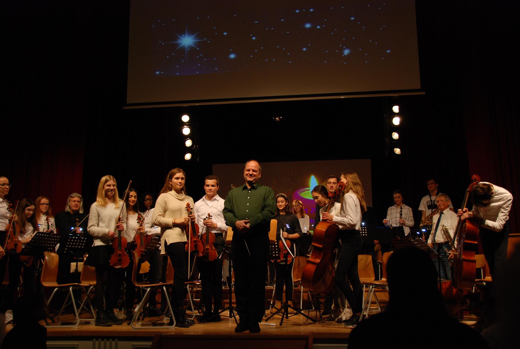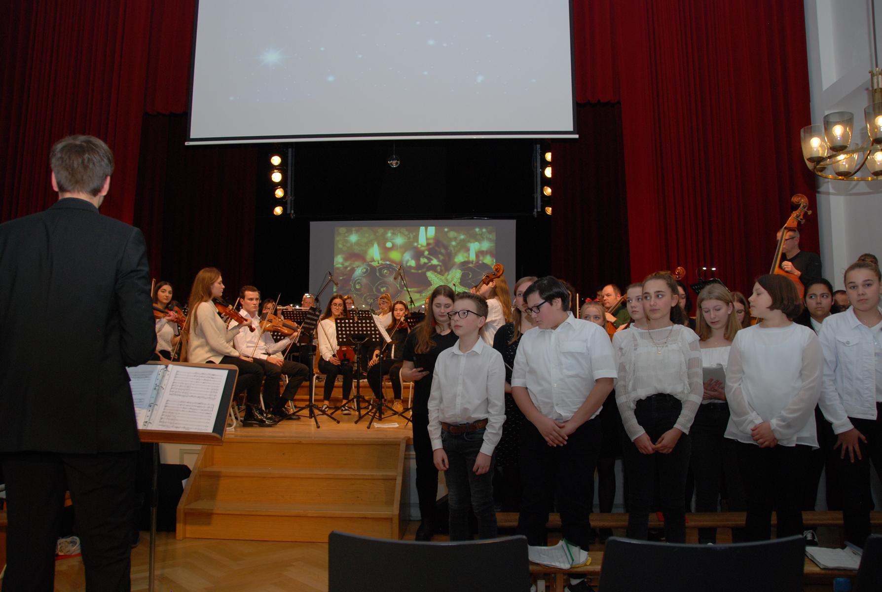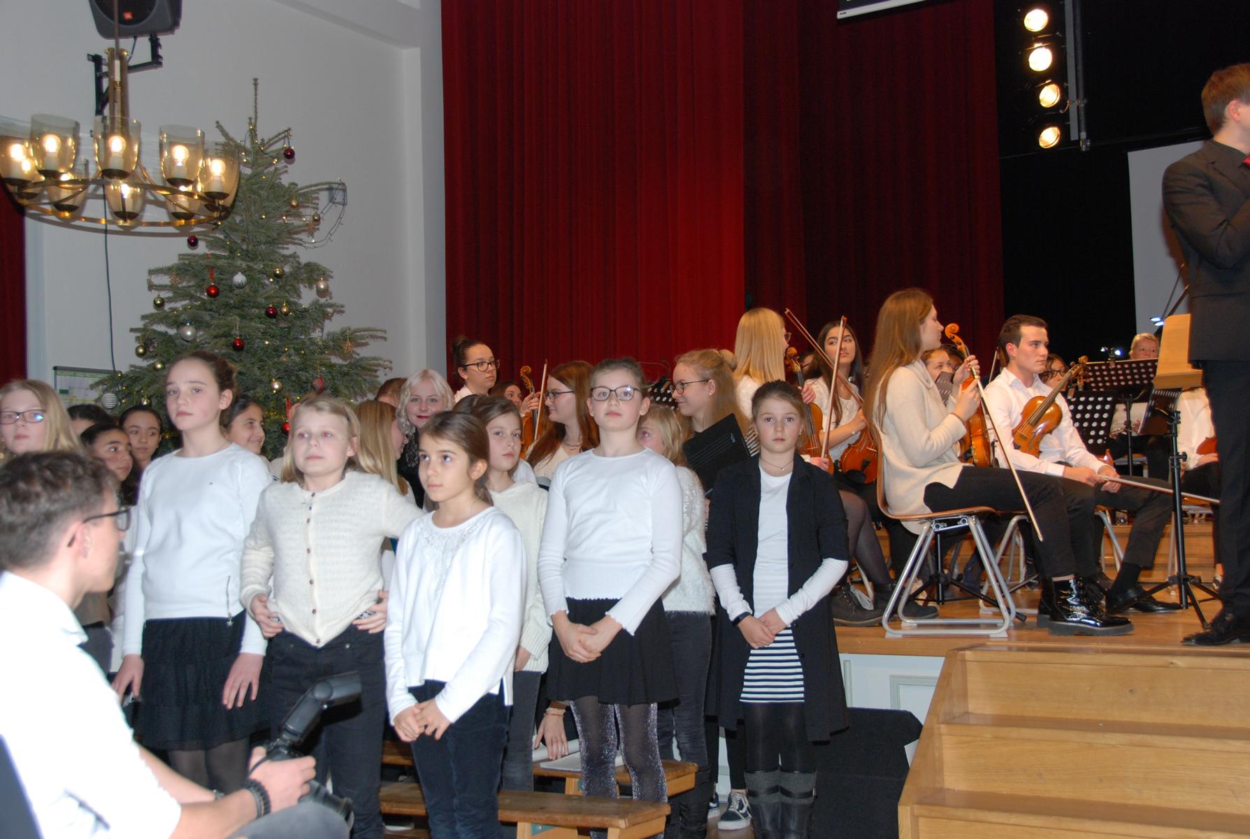 Den Auftakt des Konzertes bestritt zur Einstimmung auf Weihnachten das Kooperationsorchester JungeSinfonieMoers unter der Leitung von Moerser Musikschulleiter Georg Kresimon sowie den Musiklehrern Jörg Meschendörfer und Simon Stockamp mit einem den Chorliedern nachempfundenen Weihnachtsstück von Felix Mendelssohn und dem traditionellen Kirchenlied In dulci jubilo.