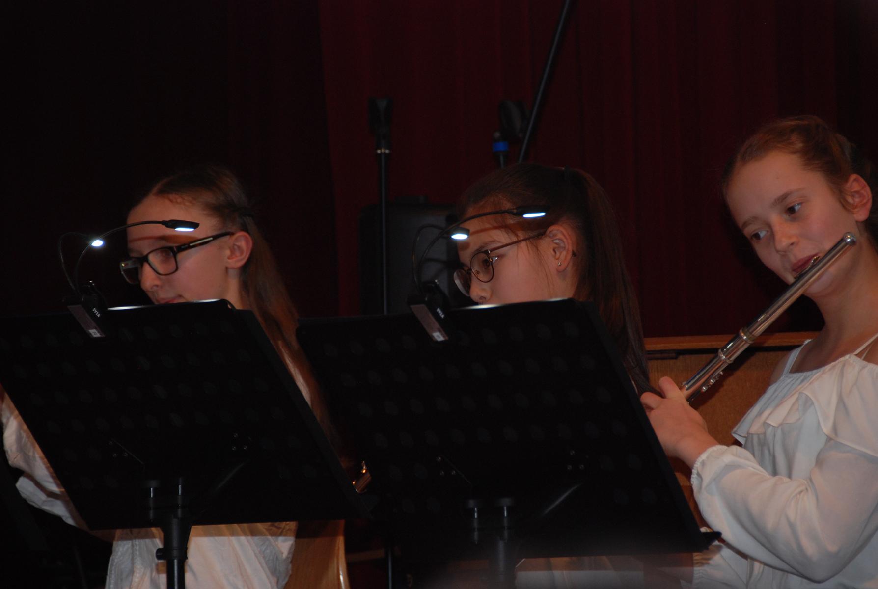 Musikalisch übernahm zunächst das Sinfonsiche Blasorchester unter der Leitung von Katharina Adams und Andreas Lind die Führung und glänzte nicht nur mit den Rahmenstücken „A Crazy Mixed-Up Christmas“, einem humorvollen, bewusst chaotischen Weihnachtsmedley, und einem kurzen Arrangement bekannter Melodien aus Tschaikowskys Nussknacker „The 3-Minute-Nutcracker“, sondern auch mit den Begleitsätzen zu „Leise rieselt der Schnee“ und „Kling, Glöckchen“, die das Publikum zum kräftigen, weihnachtlichen Mitsingen einluden.