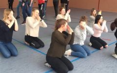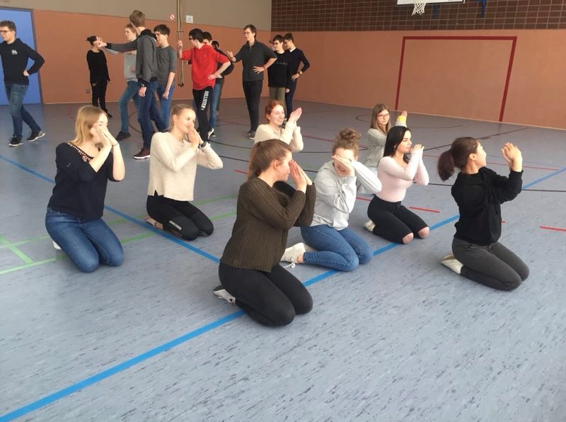 Ein Chinesischunterricht der besonderen Art - ein Tanzworkshop - wurde am Donnerstag, den 22. Februar 2018 in der kleinen Sporthalle des Adolfinums veranstaltet. Teilnehmer waren die Schülerinnen und Schüler aus den Grundkursen der EF und Q1. Etwa 70 Oberstufen­schülerinnen und -schüler bekamen einen ersten Einblick in die Ausdrucksweise des traditionellen chinesischen Tanzes. Die kompetente Leitung hatten Künstlerinnen und Künstler aus dem Yinchuan Arts Theatre in China.