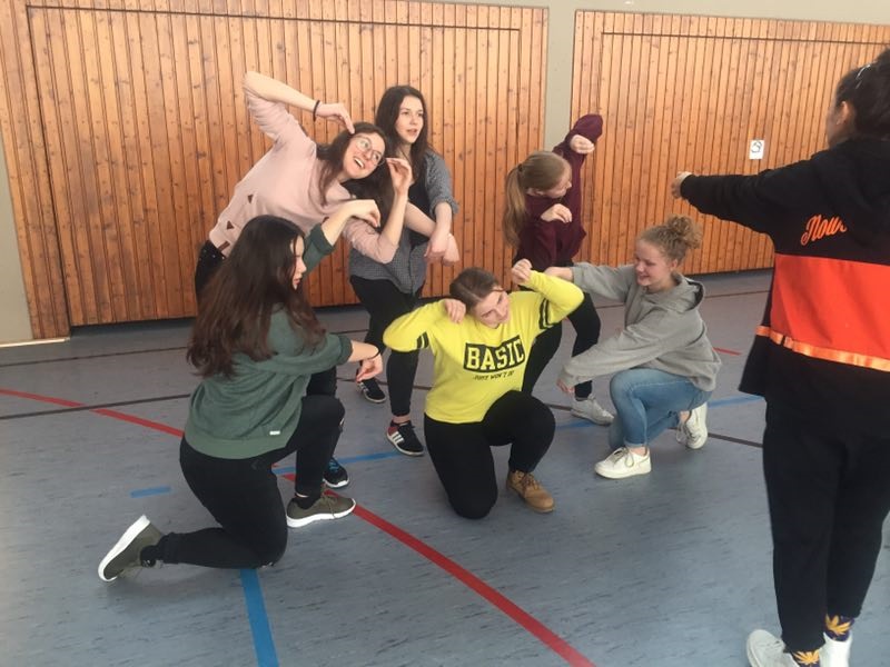 Auf Einladung vom Konfuzius-Institut Metropole Ruhr an der Universität Duisburg-Essen waren sie auf Deutschlandtour. In NRW hatten sie drei Aufführungen u.a. auch eine im Adolfinum. Bevor sie am Nachmittag um 16 Uhr ihre Tanzoper „Der Mond über dem Helan Gebirge“ eindrucksvoll aufführten, erklärten sie sich bereit, für zwei Unterrichtsstunden einen Tanzworkshop zu veranstalten. Obwohl die teilnehmenden Schülerinnen und Schüler die chinesische Sprache kennen, ist der traditionelle chinesische Tanz ihnen fremd. Trotzdem haben alle Beteiligten in mehreren Gruppen die Zeit intensiv genutzt, unterschiedliche Tänze zu lernen und am Ende stolz die wirklich sehr guten Ergebnisse zu präsentieren.
