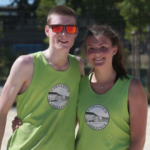 Vorausgegangen waren zwei Qualifizierungsrunden auf Kreis- und Bezirksebene.Erstmalig konnte im Beachvolleyball wieder eine Meisterschaft (nachdem in den letzten Jahren keine andere Mannschaft gemeldet hatte) im Kreis Wesel vom Gymnasium Adolfinum ausgerichtet werden. Unter der Leitung von Martin und Ann-Sophie Schattenberg – die  ehemalige Schülerin des Adolfinums unterstütze das Team auf allen Wettbewerbsebenen organisatorisch wie im Coaching – ermittelten am 29.05. im Solimare das Konrad-Duden Gymnasium Wesel (mit 3 Teams), das Gymnasium Filder Benden und die Theodor-Heuss-Realschule Neukirchen-Vluyn zusammen mit dem Adolfinum den diesjährigen Kreismeister. An dieser Stelle einen herzlichen Dank an die Stadt Moers und das ENNI, die die Beachanlagen hervorragend präpariert hatten. Hierbei ging es in die Verlängerung denn witterungsbedingt (Gewitter über dem Solimare) musste das eine Halbfinale zwischen dem Adolfinum und dem Konrad-Duden-Gymnasium beim Stand von 1 zu 1 einen Tag später weiter fortgesetzt werden. Doch die Mädchen (Lena Schlayer und Finia Brinckmann) setzten sich im finalen Satz nervenstark durch. Das Finale gegen das Filder Benden konnte das Adolfinum anschließend souverän mit 3 zu 0 gewinnen und sich damit für das Bezirksfinale am 4. Juni in Krefeld qualifizieren.