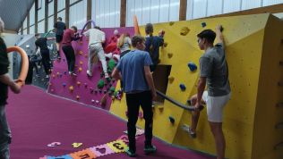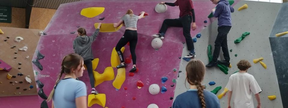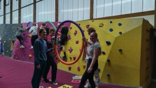 Neben dem Klettererlebnis für jeden einzelnen wurden vom begleitenden Trainer auch immer wieder teambildende Elemente eingebaut. So sollten die Schülerinnen und Schüler z.B. eine Wand paarweise mit einer Schwimmnudel in der Hand überwinden.