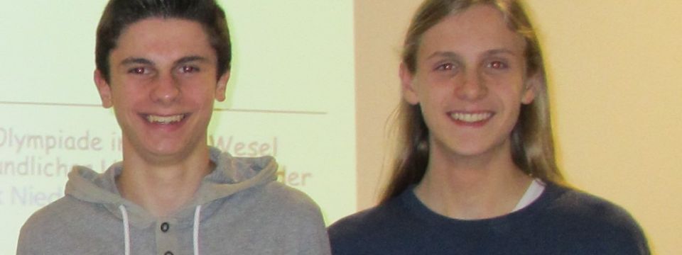 Vertreten das Adolfinum in der NRW-Runde: Yannick Cousin (Q1) und Eric van den Bosch (Q2) und Götz Lennart (7d, nicht im Bild).