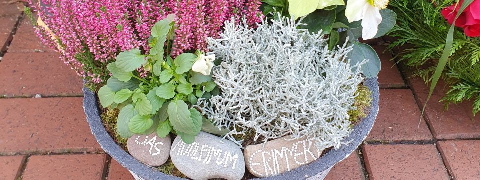 Stilvoll: Der Gedenkkranz der Schule. Gestaltet von Kunstlehrerin Christina Evers.