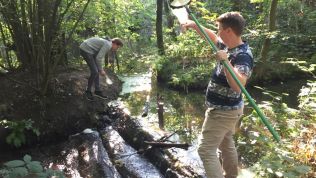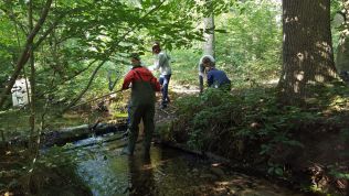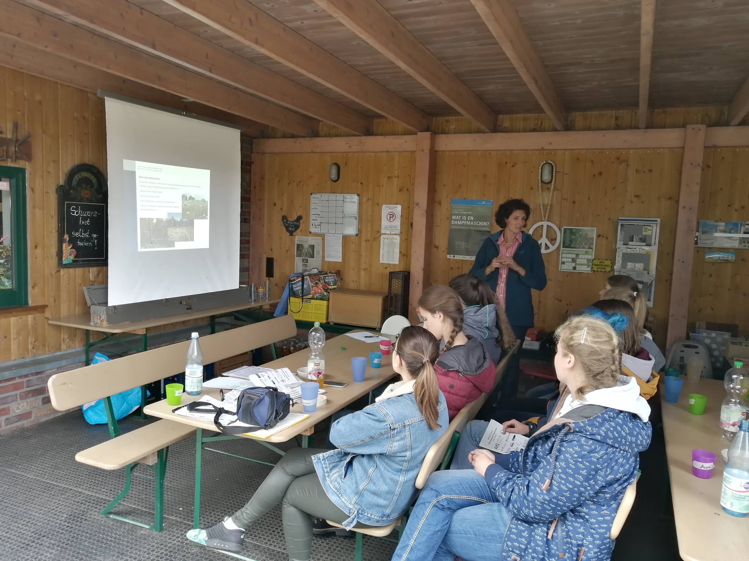 Das Programm an den insgesamt fünf Camp-Tagen war vielfältig gestaltet. Zum Auftakt wurde in die Thematik mithilfe von Fachvorträgen eingeführt. Rosemarie Kerstan vom Ingenieur- und Planungsbüro Lange sowie Christiane Eberhardt von Ökoplan Ingenieure informierten die Teilnehmerinnen und Teilnehmer zu den Themenbereichen „Boden" und „Naturnahe Lebensräume-Sekundärbiotope". Adolfiner Philipp Domagala stellte die Niers vor, ein niederrheinisches Fließgewässer, das auf seine Gewässergüte hin untersucht werden sollte.