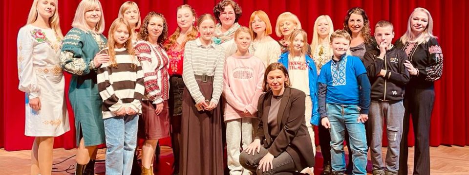 Teilen eine gemeinsame Geschichte: Tanja Maljartschuk mit den Deutsch-als-Zweisprache-Schülern und dem ukrainischen Frauenchor.