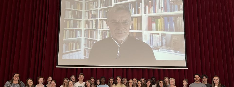 Video-Konferenz: Klaus Hurrelmann zu Gast in der Aula Adolfinum.