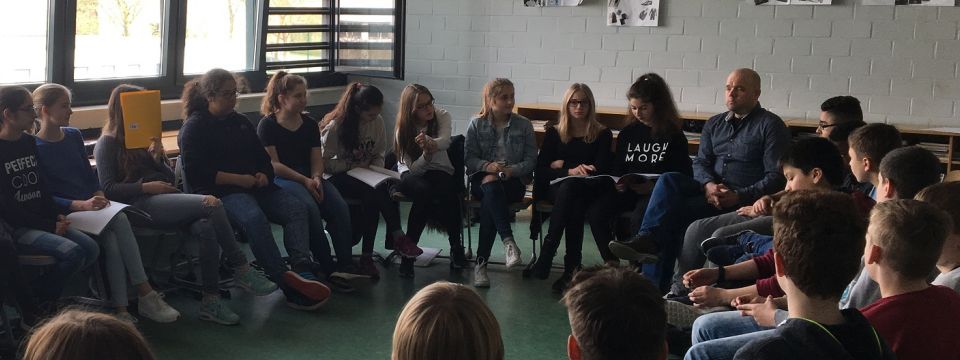 Angetan: Die Klasse 7c fand das Gespräch mit Herrn Olders und Frau Kaiser sehr interessant.