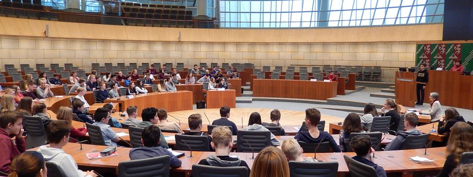 Einmal Minister oder Abgeordneter im Landtag sein: die Adolfiner aus den Klassen 9 durften es ausprobieren.