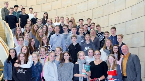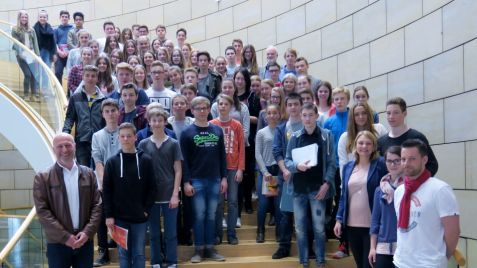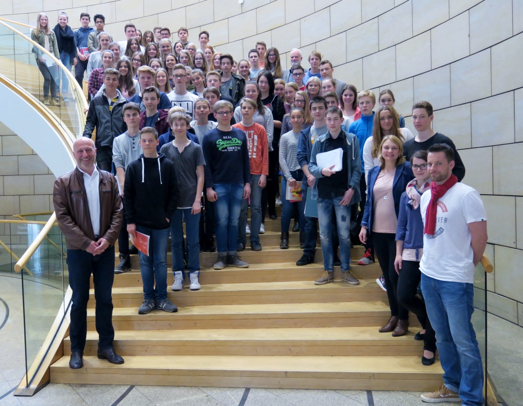 Komplette Klassenstufe 9 fühlt dem Landtag auf den Zahn