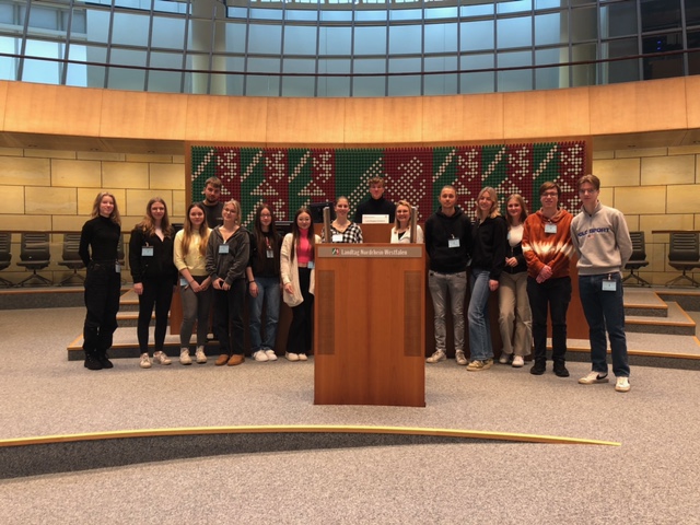 Durch die Pandemie war es den Schüler/innen der jetzigen Q2 nicht möglich, in Stufe 9 den Landtag in Düsseldorf zu besuchen. Der Leistungskurs in Sozialwissenschaften konnte diese Exkursion nun dank Frau Haustein nachholen.