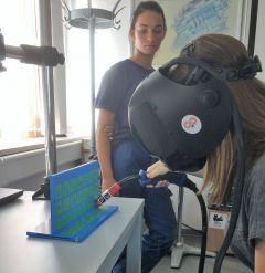 Nachdem wir fertig waren mit der Führung hatten wir die Möglichkeit virtuell zu schweißen. Es war Mit Virtual-Reality Brillen haben wir uns an einer möglichst geraden und gleichmäßigen Schweißnaht versucht. Das war gar nicht so leicht, wie es aussah.