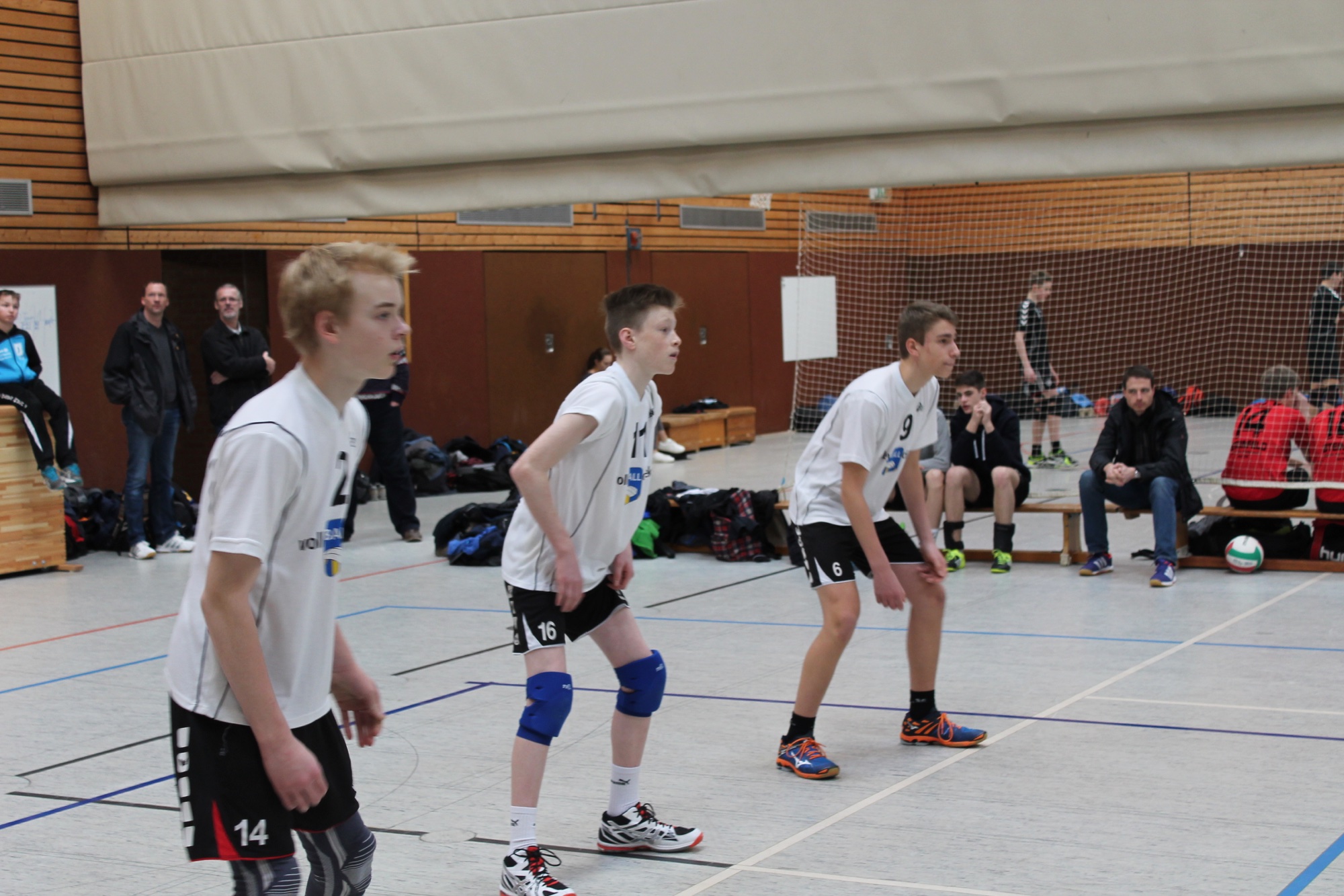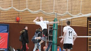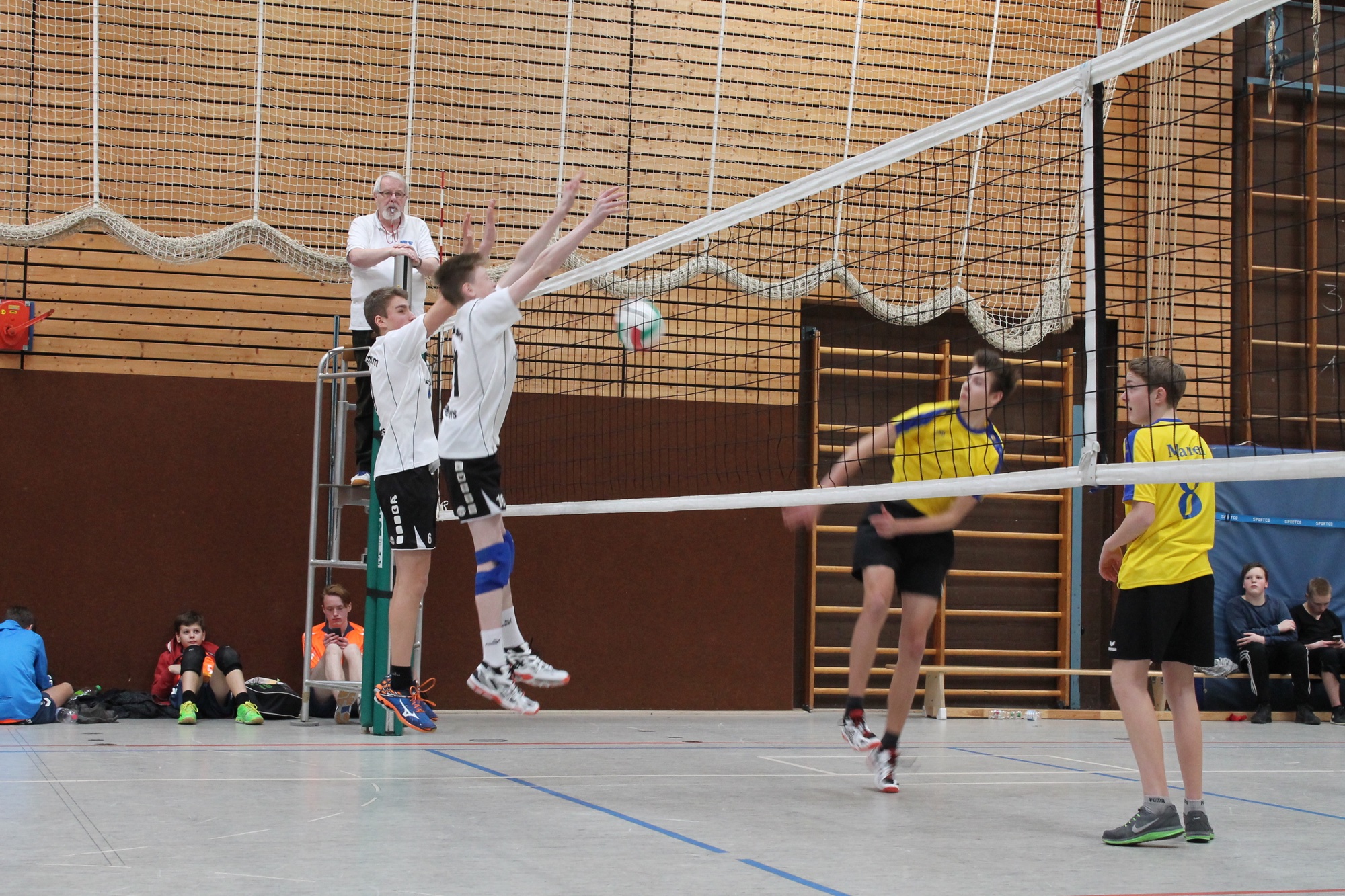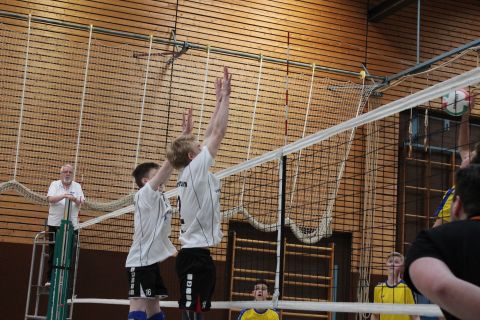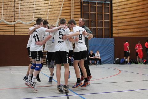 Die Voraussetzung für den Coup schaffte das Team des Adolfinums bei den Bezirksmeisterschaften in Essen Ende Januar: nach langen Jahren mit vielen 2. Plätzen konnten die Moerser Jungs das Carl-Humann Gymnasium Essen endlich einmal auch in der Halle bezwingen. Mit 2:0 blieb man dank seiner Blockstärke – die im Übrigen auch im Landesfinale den Unterschied machte – die Oberhand und sicherte sich nach drei Jahren Wartezeit wieder die Qualifikation für das Landesfinale der besten sechs Schulmannschaften aus NRW in Marl. "Der Erfolg ist umso höher zu bewerten, als dass fast alle Jungen erst zwei Tage zuvor aus der Wintersportfahrt des Adolfinums zurückgekehrt waren und von der Piste direkt in die Halle gewechselt haben", so Trainer Schattenberg. Die Jungen der Wk II mussten sich dagegen demselben Gegner ebenso deutlich mit 0:2 geschlagen geben. In diesem Fall leider „same procedure as every year“.