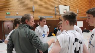 Auszeit Adolfinum: Trainer Martin Schattenberg im Kreis der Mannschaft.