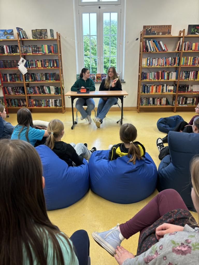 Anlässlich des Welttages des Buches, der jährlich am 23.April stattfindet und von der Stiftung Lesen gefördert wird, fand heute in der Schülerbibliothek eine Vorleseaktion für die Schüler*innen der Jahrgangsstufe 6 statt. Schüler*innen aus der Jahrgangsstufe Q1 und 8 lasen aus ihren früheren Lieblingsbüchern vor.