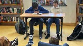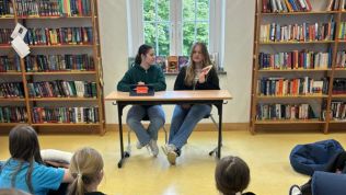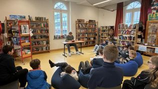 Den Start machte Lea Stas (Q1) und las aus dem Buch „Eistanzliebe“ vor, womit sie die Mädchen der 6a sehr für den Eiskunstlauf begeistern konnte. Anschließend fesselte Markus Berg (Q1) die Jungen der 6a mit seinem Lesebeitrag aus dem Roman „Die Monsterparty“ von Andrea Martin. Josephine van Holt (Q1) folgte mit einem spannenden Vortrag von „Woodwalkers“, was bei den Mädchen der 6b außerordentlich gut ankam. Die beiden Jungen aus der 8e, Leon Steinnagel und Mika Wrobbel, boten eine sehr unterhaltsame Leseaktion zu „Gregs Tagebuch“ in verteilten Leserollen für die Jungen der 6b.