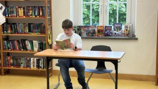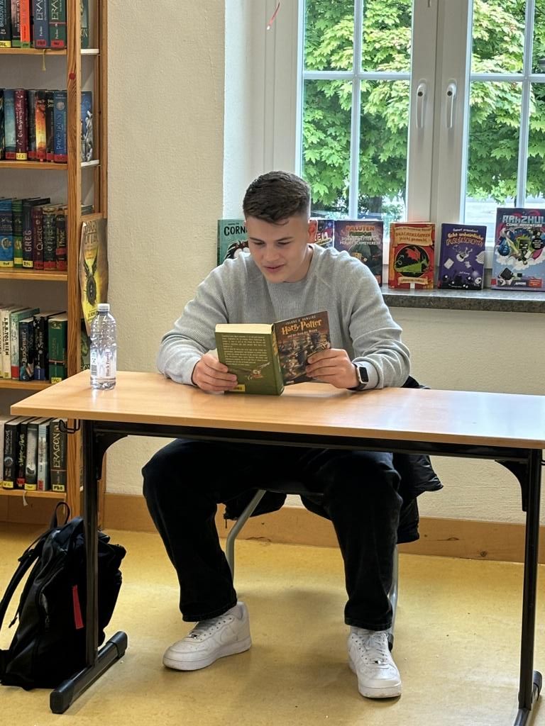 Mit „Harry Potter“ Band 1 lies Ben Feldmann (Q1) die Jungen der 6c in die Harry Potter Welt eintauchen und die Jungen waren nach der 15-minütigen Lesezeit sehr traurig, dass es schon vorbei war, da man Ben Feldmann mit seiner mitreißenden Lesestimme so gut folgen konnte.