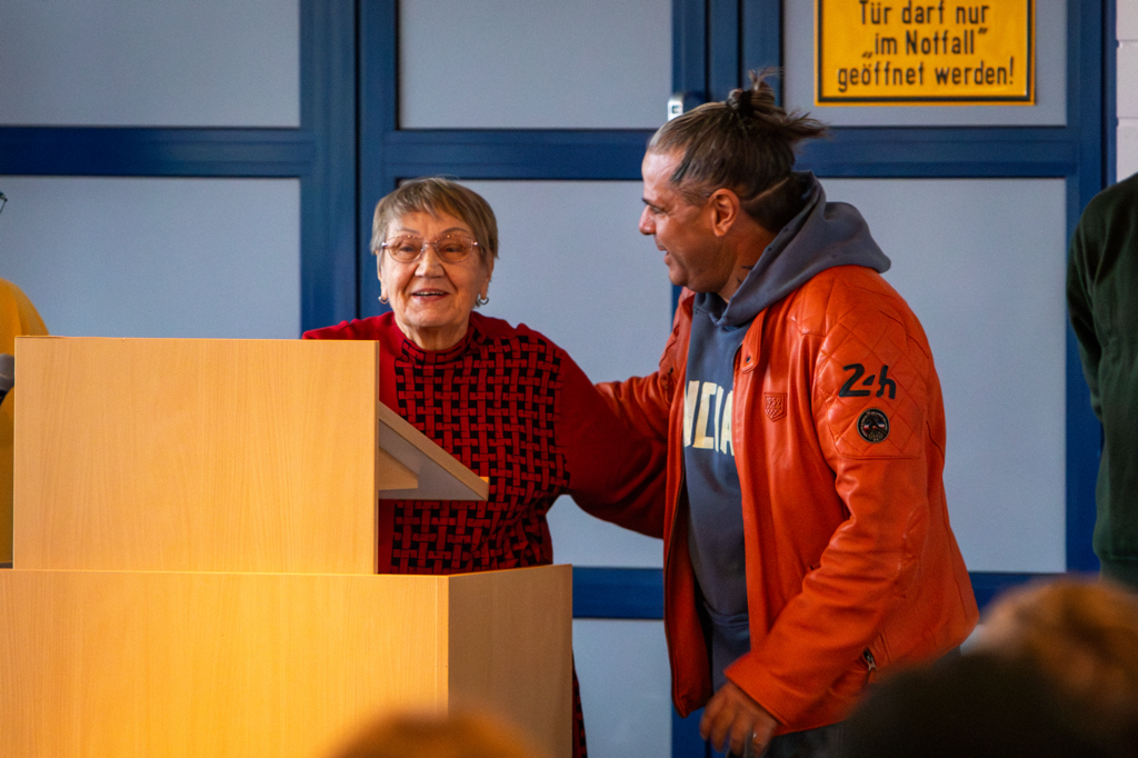 Zum Abschluss sprach Luigi Toscano, und der Moment, als er Anna umarmte, war ein berührender Abschluss der Veranstaltung. Die enge Verbindung zwischen ihnen, entstanden durch ihre gemeinsame Reise, war deutlich spürbar.
