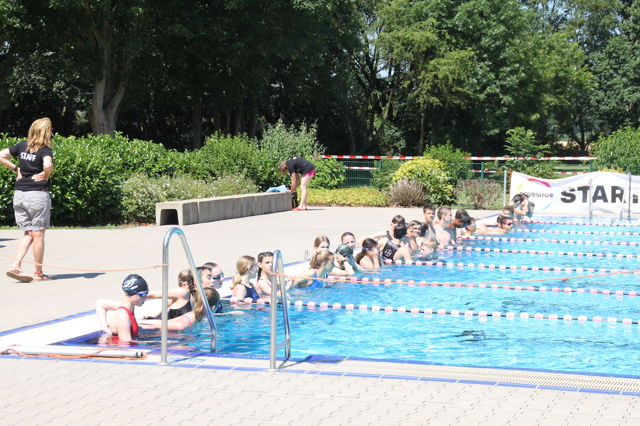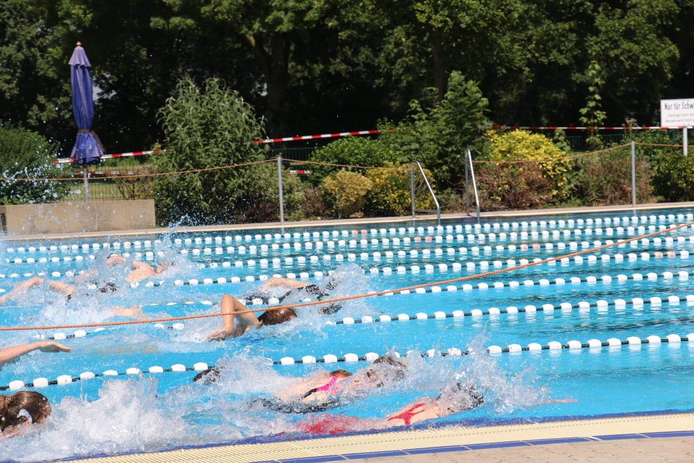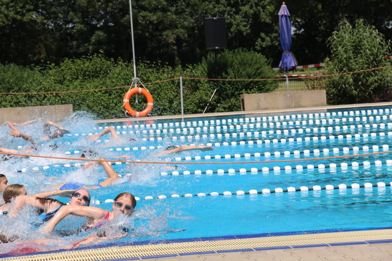 Bereits zum zwölften Mal richtet der SC Bayer 05 Uerdingen am Freitag, 28. Juni 2019 den Schultriathlon im Krefelder Badezentrum aus. Mit dabei: die Schülerinnen und Schüler der Klasse 8a des Adolfinums, die fast alle zum ersten Mal einen Ausdauerwettkampf im Schwimmen, Rad fahren und Laufen absolvierten. Begleitet wurden die Neu-Triathleten von Sportlehrer Thomas Kozianka: „Vor dem Start war die Nervosität bei vielen groß, aber mit dem Startschuss kam dann echtes Wettkampffieber auf.“