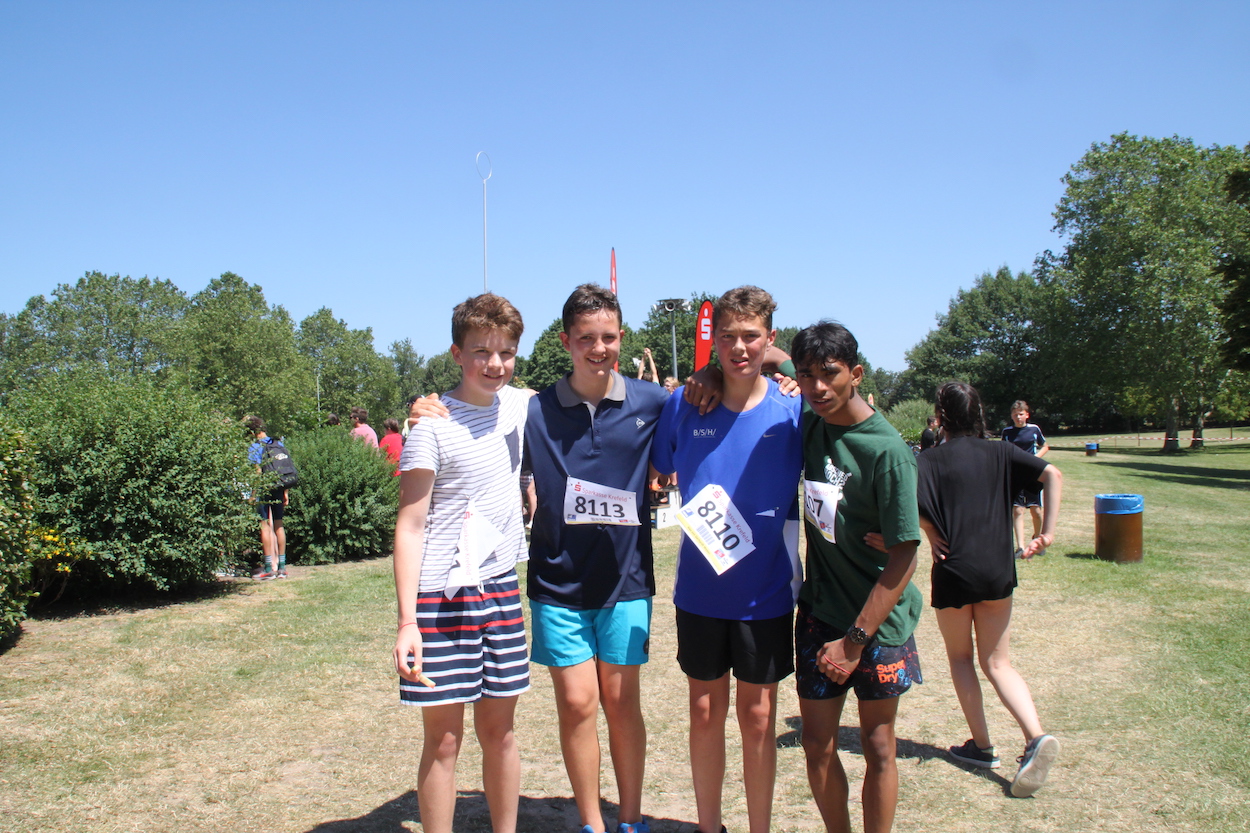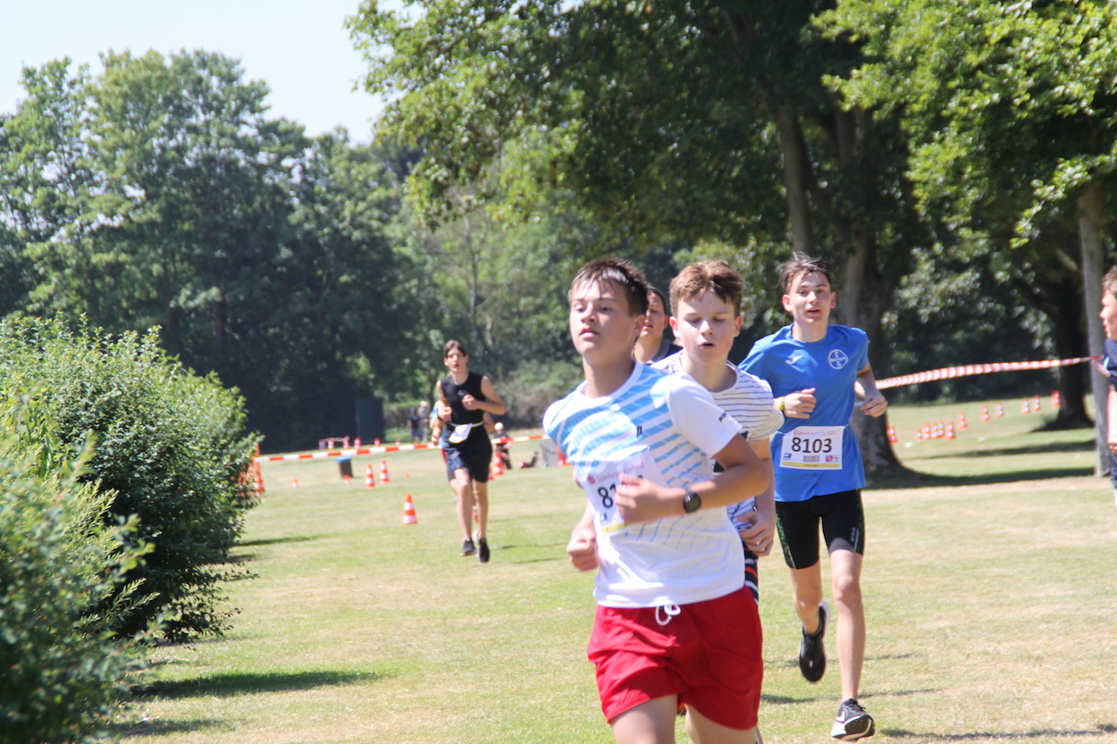Zu bewältigen waren 100 Meter Schwimmen, 2400 Meter Rad fahren und 1200 Meter Laufen. Wenig Strecke, aber die galt es in vollem Tempo zu absolvieren, verbunden mit der Herausforderung des Wechsels von einer Disziplin zur nächsten. Die Adolfiner legten sich mächtig ins Zeug – und das mit Erfolg: Bei den Mädchen verpasste Luisa Schindelmann (Platz 4) ebenso wie Jakob Berns bei den Jungen (Platz 4) nur knapp einen Platz auf dem Podium. Und auch die Staffeln – je ein Schüler startete im Schwimmen, Rad fahren und Laufen – schlugen sich mehr als achtbar; das beste Team belegte ebenfalls Platz 4. Höchstleistungen erbrachte ebenfalls der technische Service, der kurz vor dem Wettkampf noch eine Vielzahl von Reifen aufpumpen musste und auch noch einen Platten flickte.