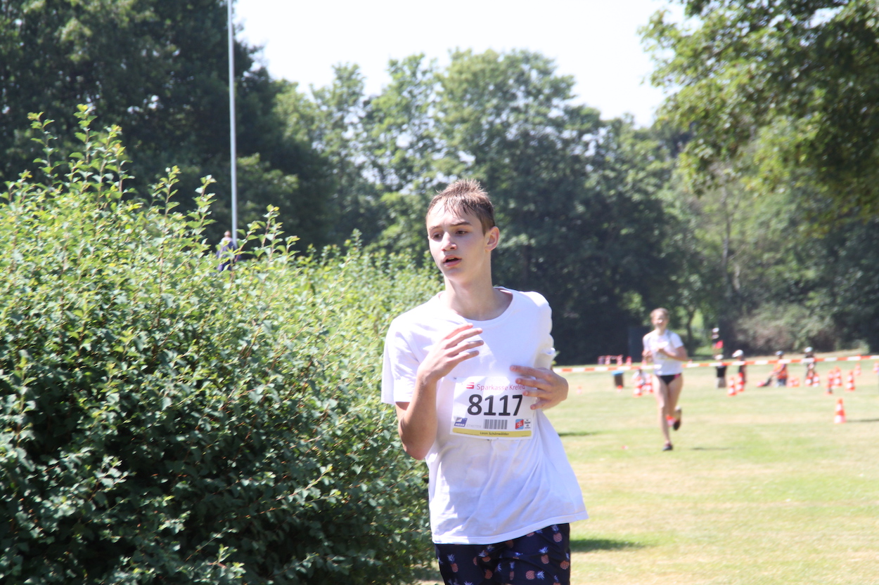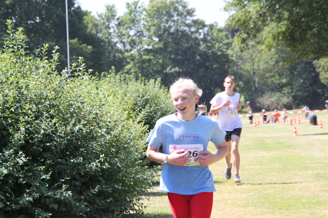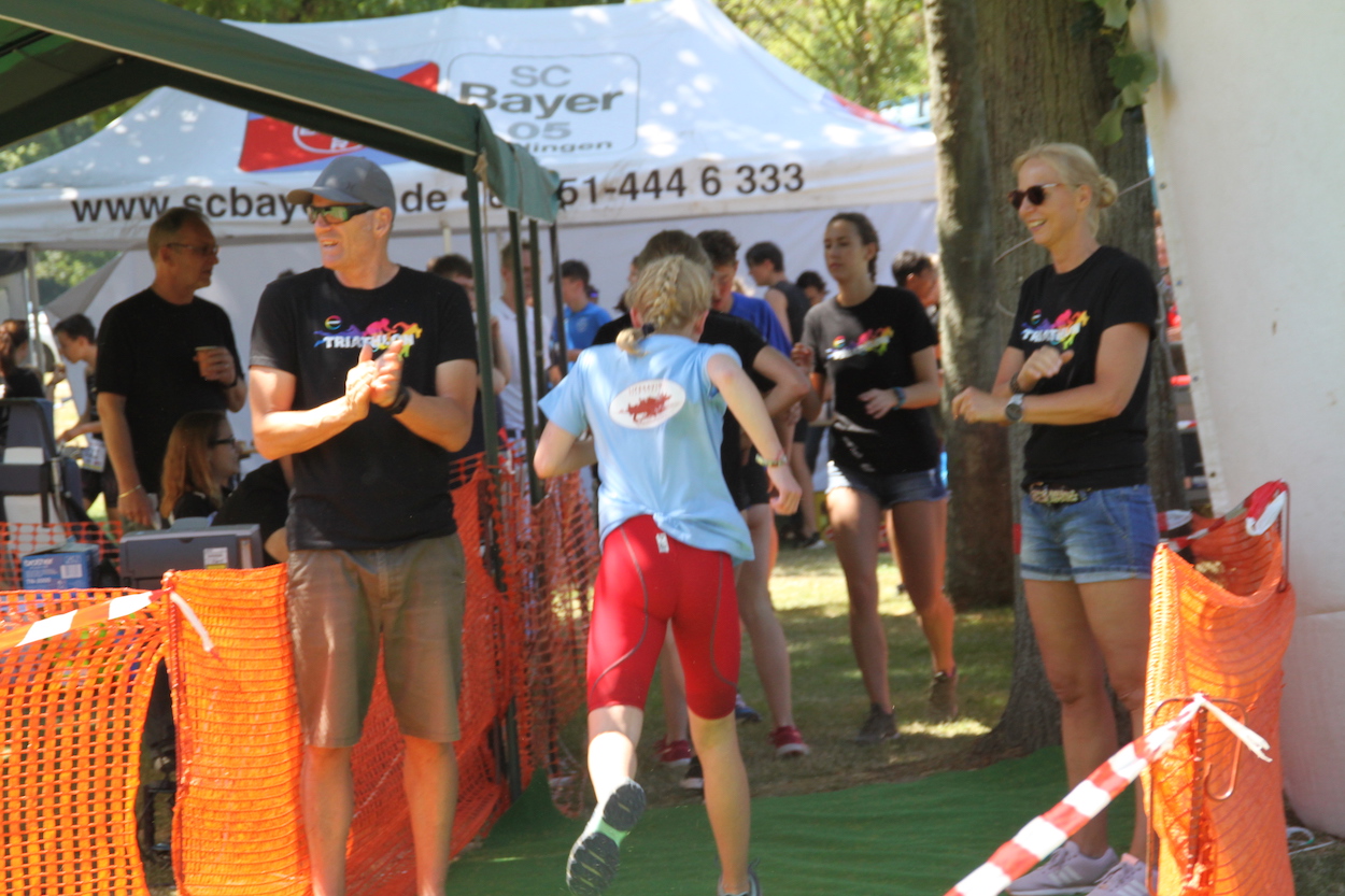 Und auch die Zuschauer konnten den Schultriathlon in toller Wettkampfatmosphäre genießen: Bei strahlendem Sonnenschein erlebten die Fans einen Wettkampf der kurzen Wege; alle drei Disziplinen und die Wechsel ließen sich gut hintereinander anschauen. Insgesamt gab es 800 Starts und fast 20 teilnehmende Schulen aus Krefeld und Umgebung.