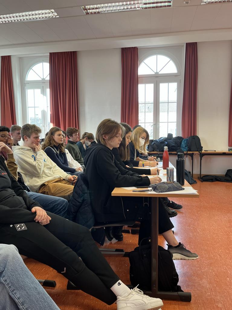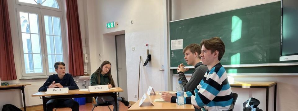 Wie in vielen der letzten Jahre fand auch in dieses Jahr am Freitag, den 13. Januar der Schulentscheid von Jugend Debattiert der Jahrgangsstufe 9 und Q1 statt. Dafür trafen sich, die von ihrem Mitschüler*innen gewählten Vertreter, diese waren in Jahrgangsstufe neun aufgeteilt in zwei Hauptkandidaten und zwei Stellvertreter pro Klasse, in der Q1 acht gleichberechtigte Vertreter*innen, im Raum I27. Als mentale Unterstützung durfte jeder Nominierte sich zwei Begleitpersonen auswählen, welche der Veranstaltung zuschauten. Mit dabei waren als Juror*innen die Lehrer*innen Daniel Heisig-Pitzen, Franziska Deventer und Julia Haustein sowie die Schülerinnen Kim Schirra, Angelina Hoffmann und Alissa Wecker.