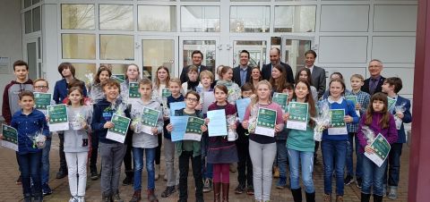Bei der Preisverleihung gab es neben der Urkunde auch eine Chem-pions-Tasse, eine Powerbank und Süßigkeiten. Die Urkunden wurden von Staatsekretär Mathias Richter überreicht.