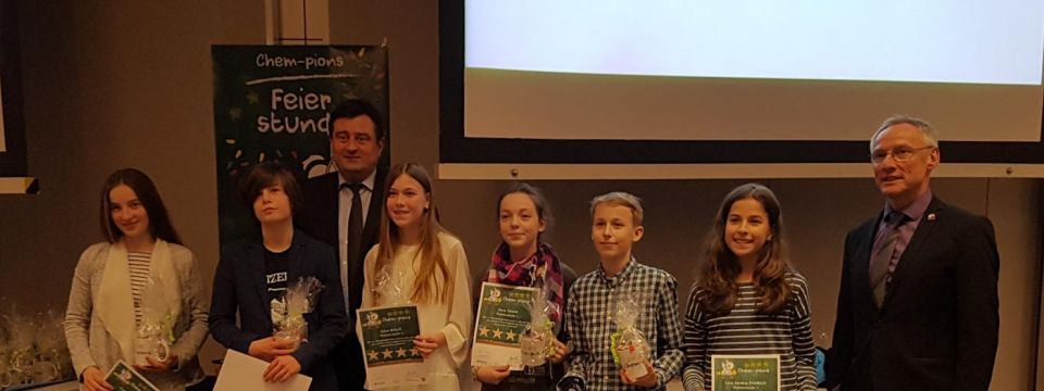 "Wahre Chem-Pions": Ein Teil der Chem-pions-Preisträger mit Ihren Urkunden: Julia Wolff (3. von links).