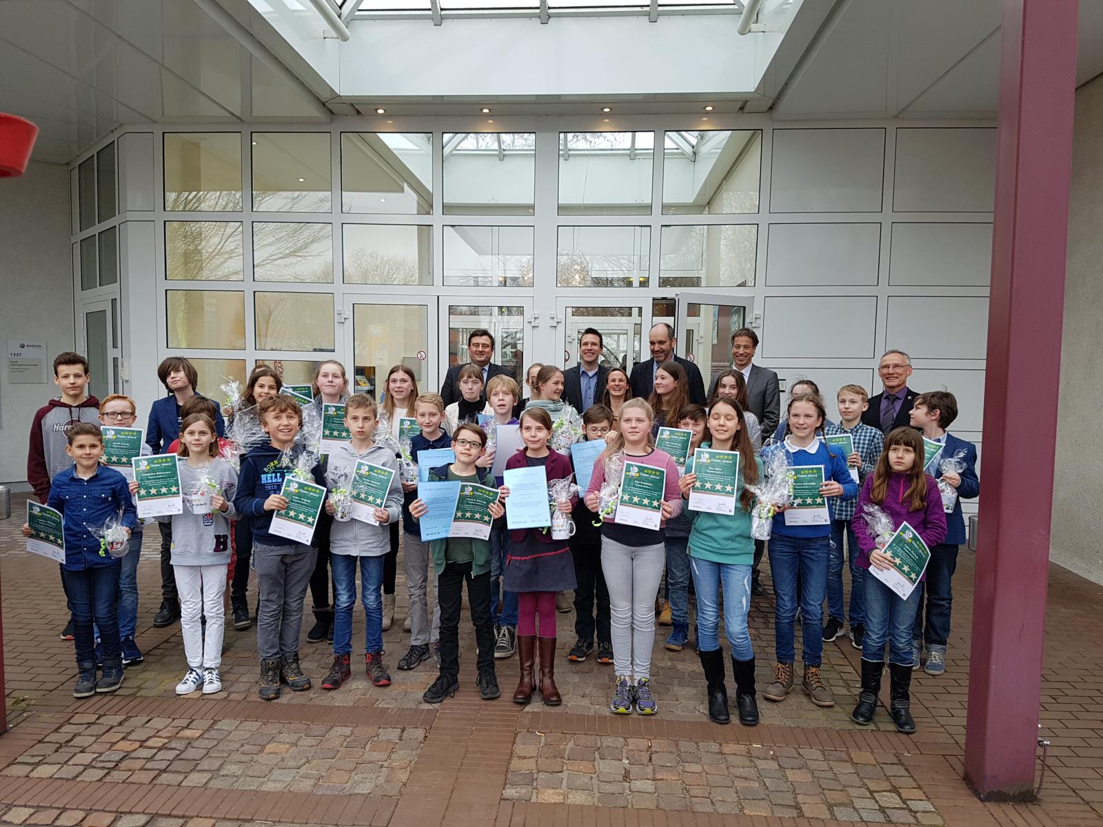 Insgesamt waren 39 Schülern aus ganz NRW mit ihren Familien dort eingeladen. Mit dabei war auch Aaron Berger aus der 5a, der beim Wettbewerb mitgemacht hat, obwohl in der 5. Klasse noch kein Chemieunterricht erteilt wird.