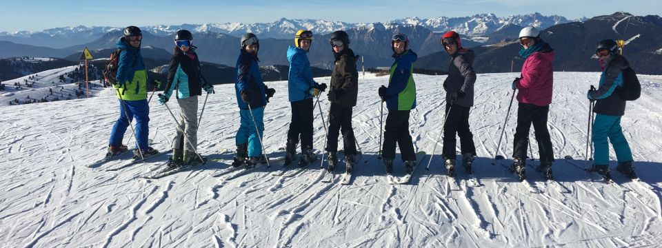 Die gesamte Jahrgangsstufe 8 ist noch bis zum kommenden Samstag, 27. Januar 2018, zum Ski fahren in Italien. Auf der Hochebene von Folgaria in der Nähe von Trento genießen die fünf Klassen Kaiserwetter und bestens präparierte Pisten. "Wir haben hier zwar keine Schneeberge, aber zum Ski fahren - insbesondere für die vielen Schüler, die zum ersten Mal auf Skiern stehen - sind diese Bedingungen ideal", so die stellvertretende Schulleiterin Andrea Klein.