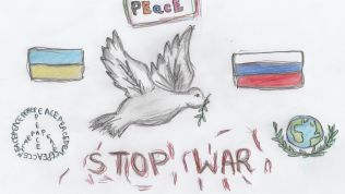 Entstanden war die Idee durch zahlreiche Gespräche mit Schülerinnen und Schülern, in denen die große Anteilnahme mit den Menschen im Krieg deutlich wurde, aber auch Ängste um die Bedrohung der eigenen Sicherheit und der Zukunft thematisiert wurden. Kunstlehrerin Christina Evers hat die Aktion initiiert: "Ein Bedürfnis haben wir sicherlich alle in diesen Tagen: etwas zu unternehmen, aktiv zu werden und diese große Katastrophe nicht nur tatenlos mit anzusehen. Daher gab es am Freitag in der ersten großen Pausen ein Friedensgebet, organisiert von der Fachschaft Religion, das bei der Schulgemeinde auf große Resonanz gestoßen ist, die Aula war gut besucht und bei einer ernsthaften und ruhigen Atmosphäre wurde deutlich, wie wichtig es ist, sich in Krisensituationen in einer Gemeinschaft aufgehoben zu fühlen."