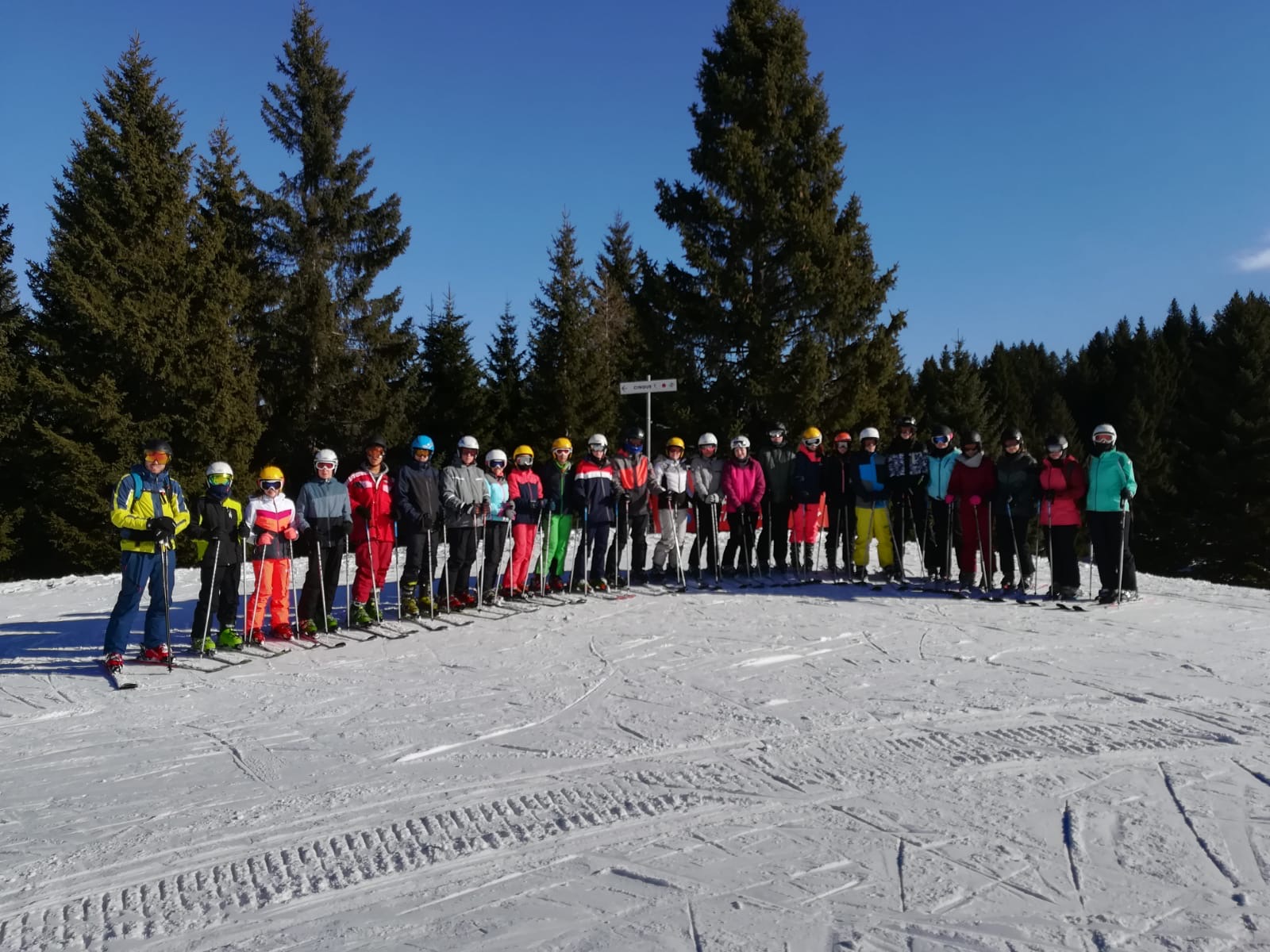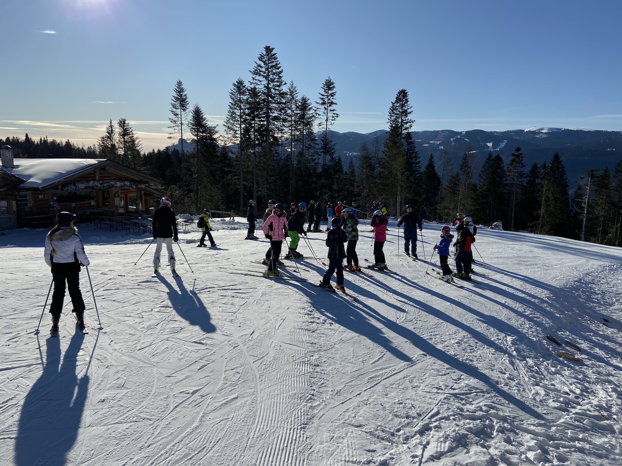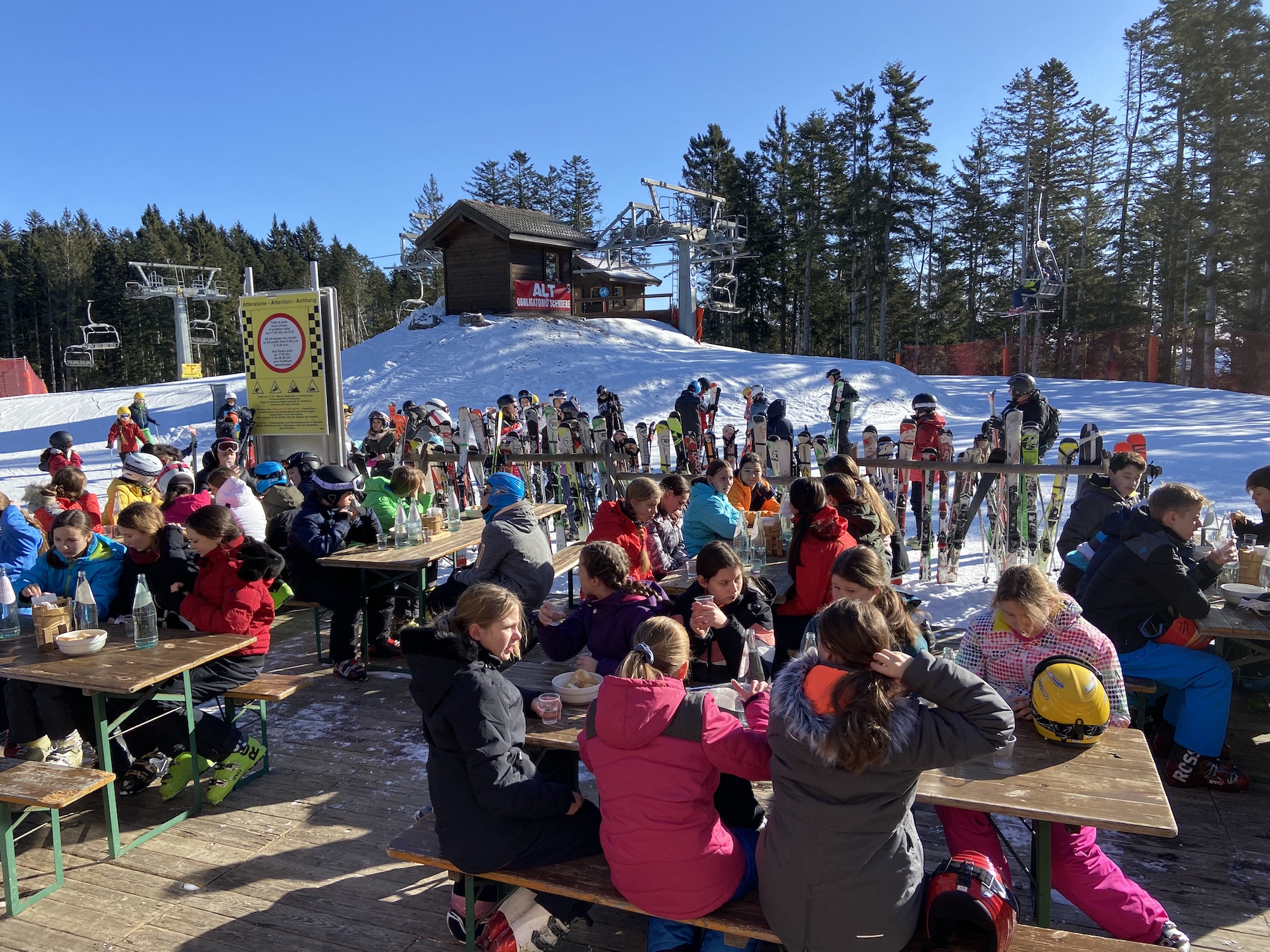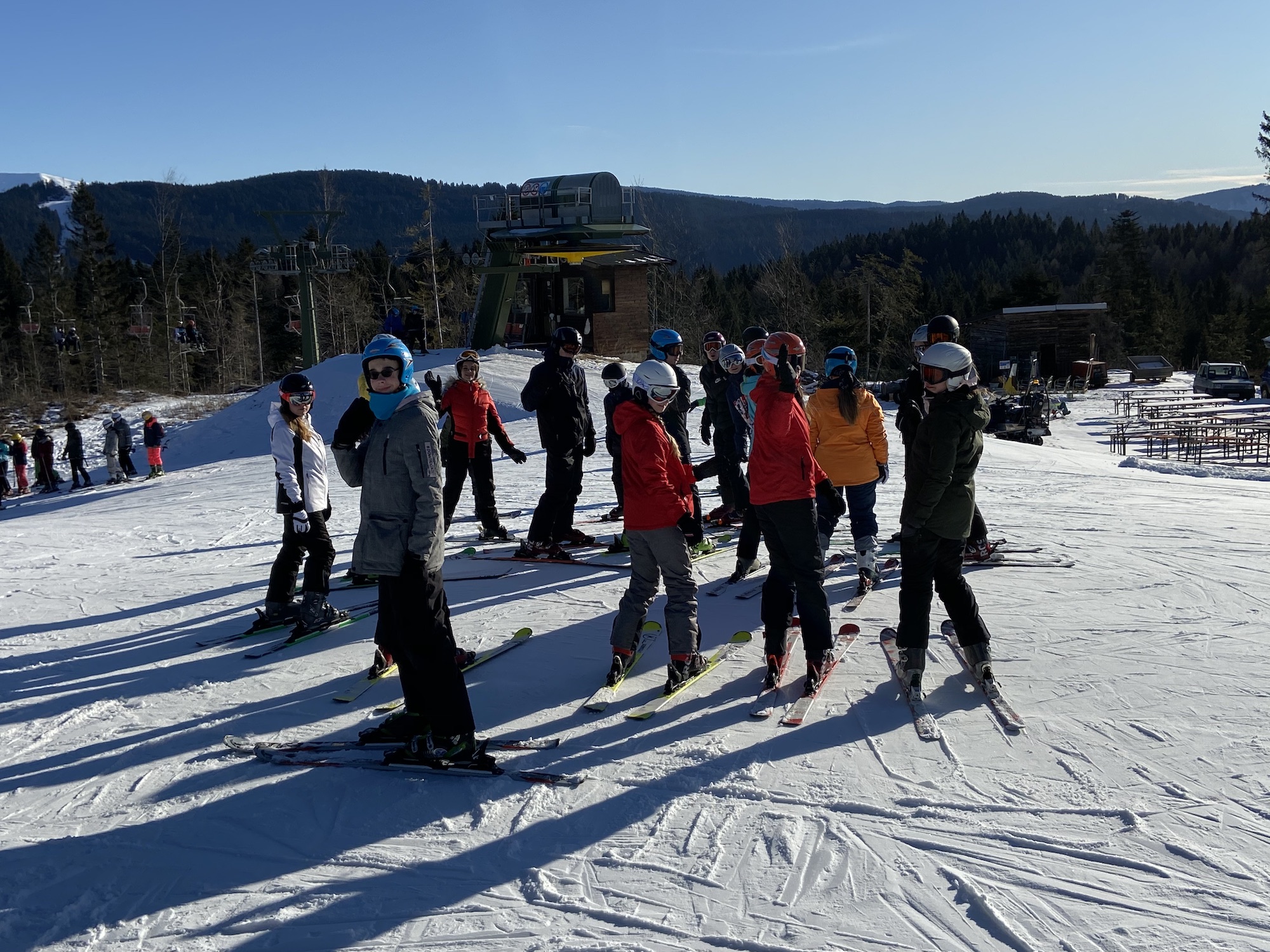Auf dem Gipfel: die Klasse 8d im Skigebiet von Lavarone.