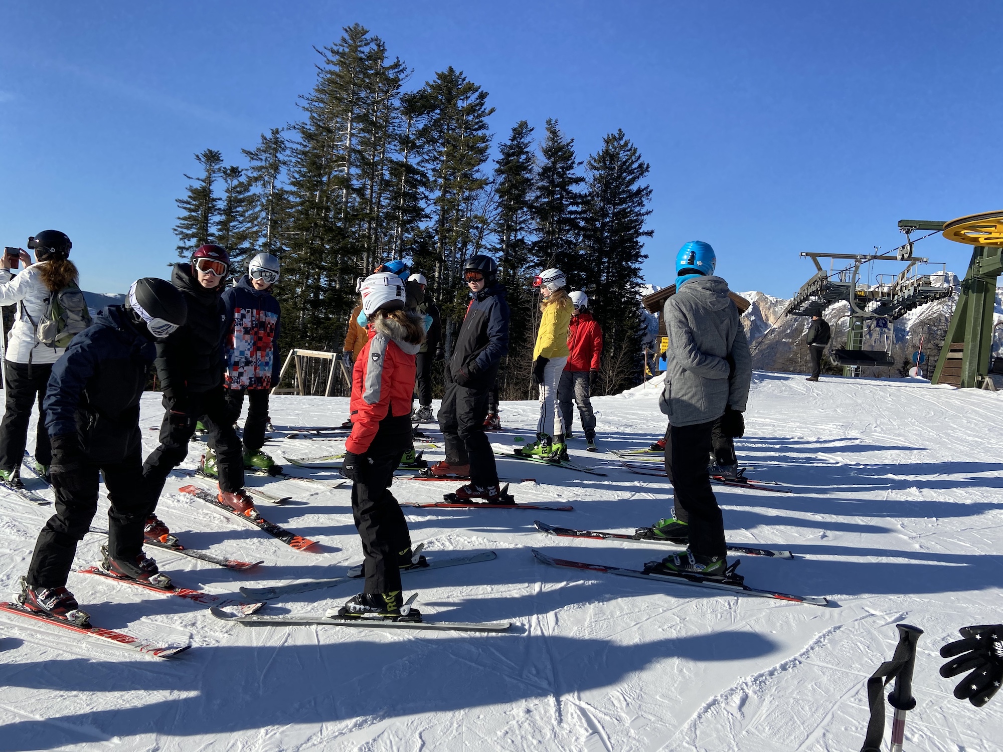 Die Jahrgangsstufe 8 ist aktuell zur Wintersportfahrt in Italien. Die 144 Schülerinnen und Schüler – begleitet von 16 Lehrerinnen und Lehrern - genießen auf der Hochebene von Folgaria im Trentino perfekt präparierte Pisten und strahlenden Sonnenschein. „Wir haben hier vor Ort wieder tolle Bedingungen. Gerade den vielen Anfängern, die wir in diesem Jahr dabei haben, fällt das Lernen so deutlich leichter“, so Sportlehrer Martin Schattenberg, der die Fahrt seit Jahren organisiert und begleitet. Am Samstagvormittag kommen die Wintersportler wieder nach Moers (Ankunft auf dem Parkplatz am Solimare).