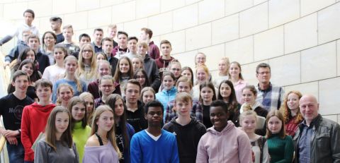 Das Team des Besucherdienstes führte die Neuntklässler anschaulich in den parlamentarischen Alltag ein. Dies beinhaltete die nachgestellte erste Lesung eines Gesetztesentwurfes, die man sogar im Plenarsaal inszenierte. Während des Politikunterrichts waren im Voraus Reden zum Thema „Wahlrecht ab Geburt“ aus verschiedenen Standpunkten verfasst worden, sodass die Redebeiträge zu einem ernsthaften Austausch beitrugen. Wie auch bei „normalen“ Sitzungen üblich, war die Lesung öffentlich und eine kleine Zuschauergruppe wohnte ihr bei. Mit der abschließen Abstimmung beschlossen die „Parlamentarier“, dass Fachausschüsse weitere Recherche betreiben sollten.