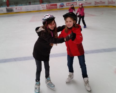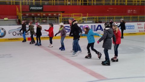Gemeinschaftserlebnis: Die Mitschüler als "Stütze beim Eislaufen.