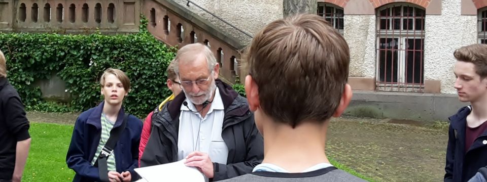 Am Donnerstag, 1. Juni 2016, begrüßte Bernhardt Schmidt die Klasse 9b, in Begleitung von Geschichtslehrerin Dina Mecklenburg, zu einer Führung durch den historischen Stadtkern von Moers. Bernhardt Schmidt beschäftigt sich seit Jahren mit der Moerser Geschichte - vor allem mit der Zeit des Nationalsozialismus - und hat verschiedene Bücher zum Thema, unter anderem auch "Moers unterm Hakenkreuz“. Somit fand die Stadtführung untef Leitung eines echten Experten statt. Maurice Schmitz aus der Klasse 9d berichtet über die Führung.