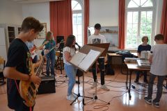 Der Viertklässler Jason, der im Jutebeutel Projekt mitwirkt, hat große Freude an seiner Arbeit gefunden. „Ich mache eine Tasche mit einem Einhorn drauf für meine Mama!“, erzählt er strahlend. Eine Sechstklässlerin des Adolfinum und ein Achtklässler der Förderschule spielen zusammen in der Schulband. Gemeinsam mit dem zuständigen Lehrer haben sie sich für das Lied „An Tagen wie diesen“ entschieden.