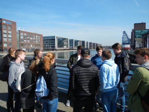 Welche Entwicklung nahm unsere Region? Wie sich der Raum des rheinisch-westfälischen Industriereviers im Laufe der Zeit verändert(e) untersuchten die Schülerinnen und Schüler des Grundkurses Geographie der Qualifikationsphase 2 unter Leitung von Lehrer Ernst Kisters anhand von Beispielen aus Moers, Kamp-Lintfort und Duisburg. Und die Präsentationen erfolgten nicht im Klassenraum, sondern „vor Ort“.