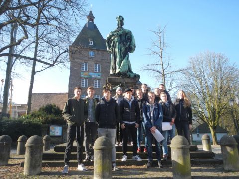 Dazu bereiteten die Schülerinnen und Schüler in Kleingruppen Exkursionen an den o.g. Orten vor und erläuterten ihren Mitschülern z.B. welche Auswirkungen die Entwicklungen der Zeche Friedrich Heinrich für Kamp-Lintfort hatte. Dabei wurde jedoch nicht nur die Vergangenheit thematisiert sondern auch die Pläne, Probleme und Chancen, die sich u.a. durch die Industriebrache der ehemaligen Zeche ergeben. Auch auf die bevorstehende Landesgartenschau in Kamp-Lintfort ging die Gruppe ein.