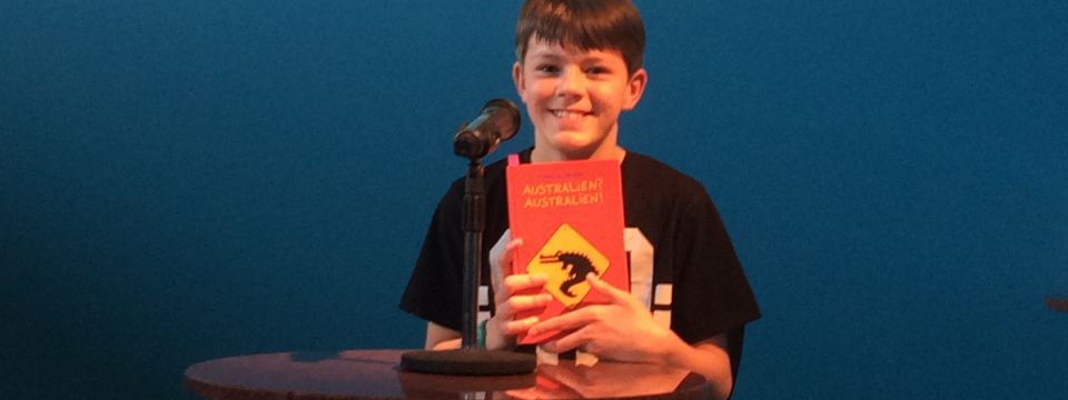 In der ersten Runde lasen die Schülerinnen und Schüler ihre vorbereiteten Texte vor. Timo musste lange warten, präsentierte aber seinen Auszug aus "Australien? Australien!" von Tino Schrödl souverän. Nach einer kleinen Mittagspause ging es dann an den unbekannten Text, bei dem Timo deutlich punkten konnte, da das auch in den vorhergegangenen Runden seine absolute Stärke war.