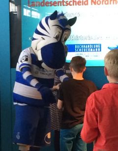 Tierischer Gratulant: Timo und MSV-Zebra Ennatz.