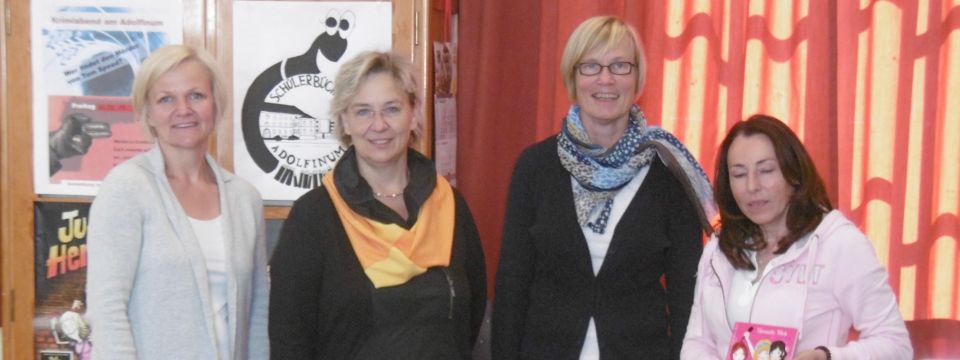 Tolles Geschenk: Karin Wendt, Schulleiterin der Gebrüder-Grimm-Schule (2. von links) überbrachte die Bücherspende - zur Freude des Büchereiteams des Adolfinums (von links: Eva Redeker, Cordelia Rahrbach-Sander und Barbara Reiss).