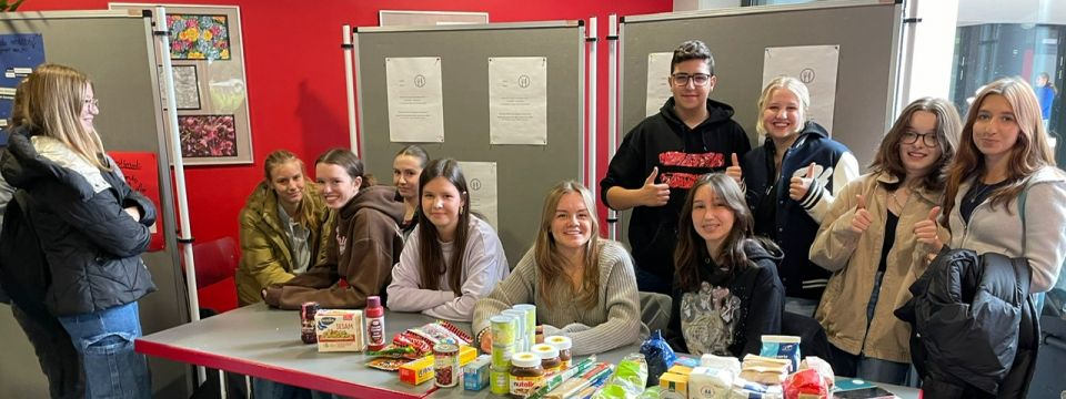 In der Woche vor den Herbstferien hat die Klasse 8a mit Unterstützung von Frau Evers und Herrn Neumann die Schülerinnen und Schüler des Adolfinums dazu aufgerufen, Lebensmittel mit einer langen Haltbarkeit mit in die Schule zu bringen. Das Motto dazu lautete „Ein Teil mehr“. Dieses Teil sollte beim Einkauf zusätzlich gekauft werden, damit es an Bedürftige gespendet werden kann.