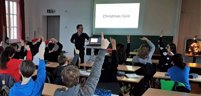 Donald Dunne überzeugte: Beim abschließenden Christmas Quiz hatten die Schülerinnen und Schüler sichtlich Spaß.