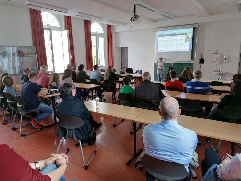 Am Präsentationstag haben Herr Kisters (Koordinator des Erweiterungsprojektes) und Herr Klag alle Präsentierenden und Zuschauerinnen und Zuschauer begrüßt. Alle Anwesenden hatten im Anschluss die Möglichkeit, ihr eigenes Programm aus den vier parallel stattfindenden Vorträgen zusammenzustellen.